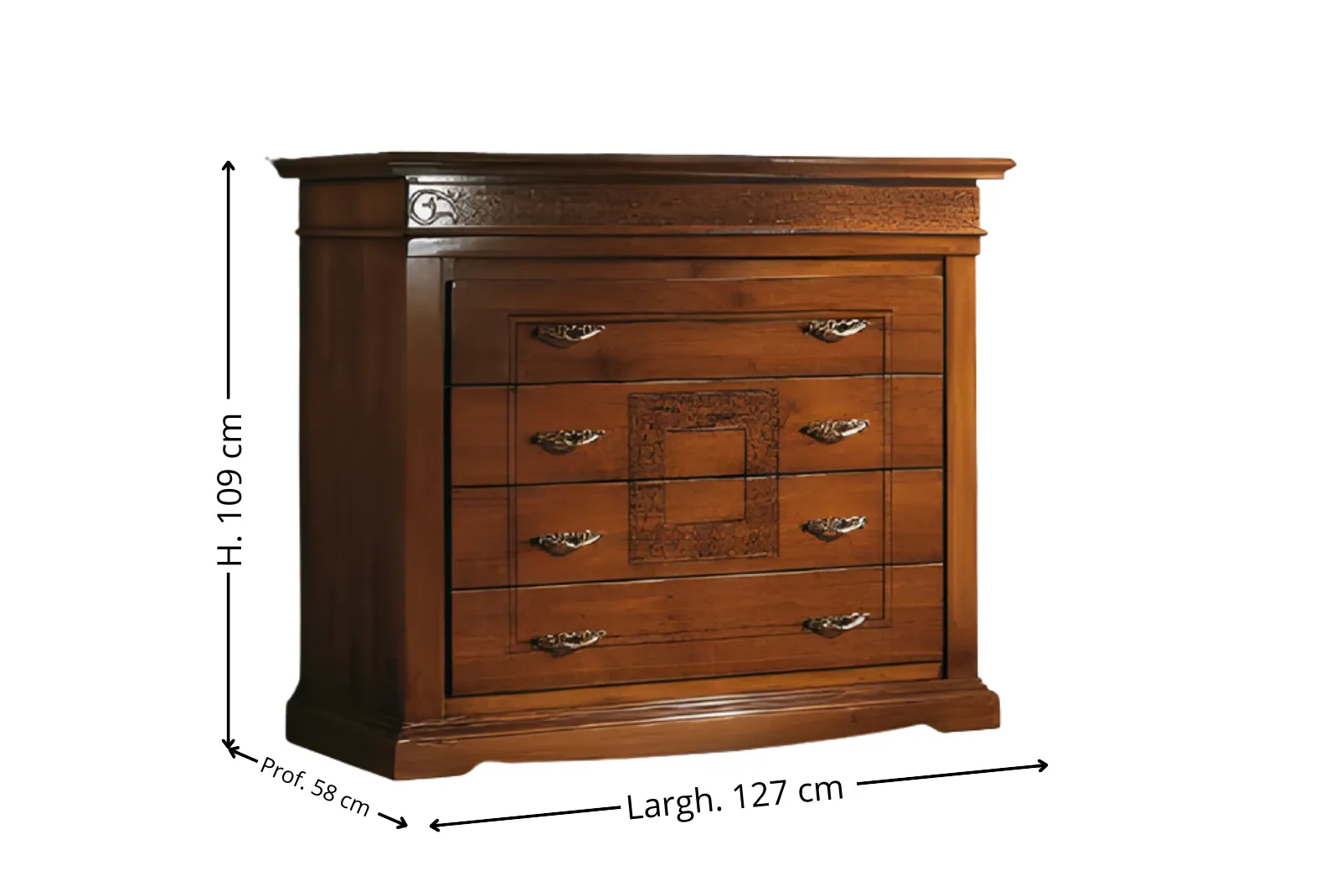 | Dimensioni Comò | Larghezza 127 x Profondità 58 x Altezza 109 cm |