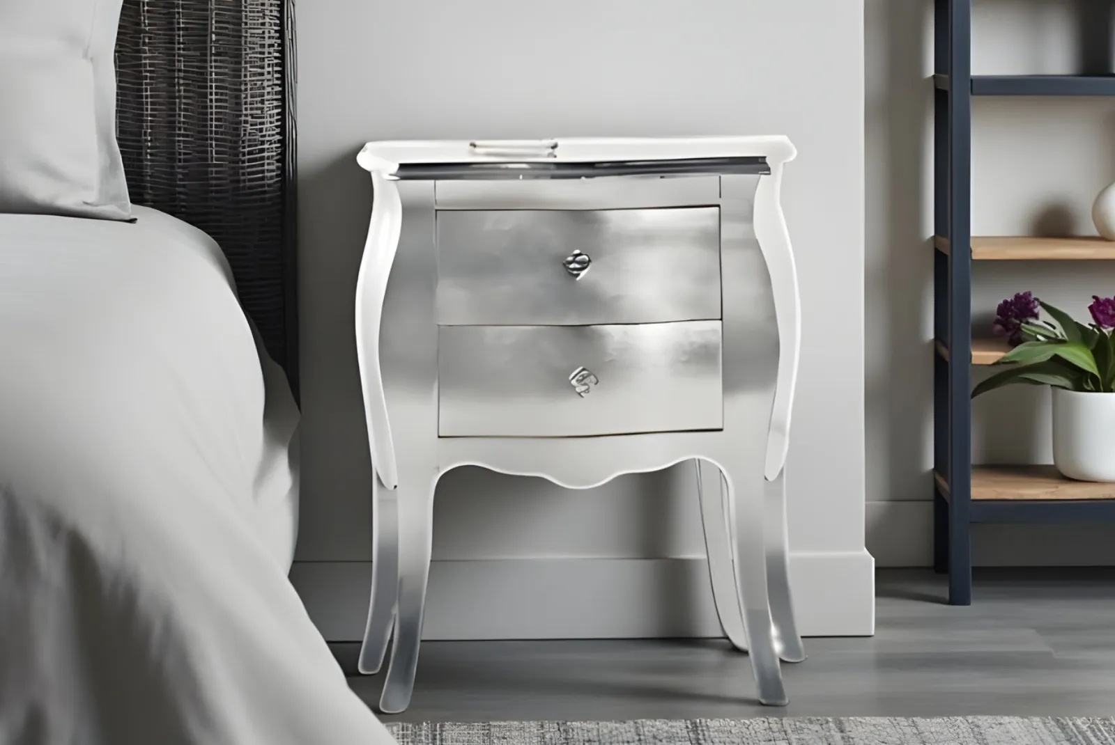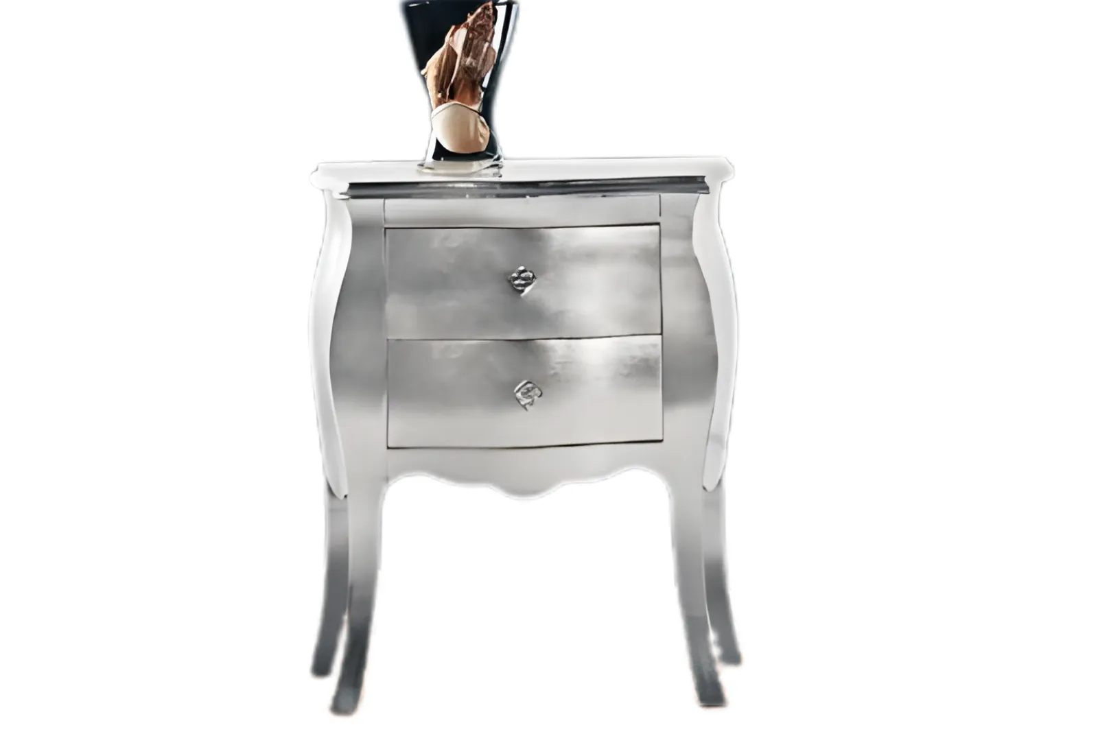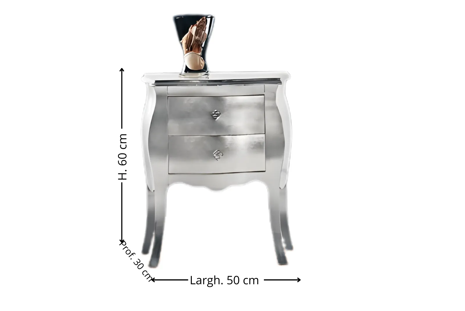 Lasciati avvolgere dal fascino senza tempo dello stile Arte Povera con il Comodino bombato 2cassetti foglia argento Swarovski . Realizzati in legno massello, questi mobili sono caratterizzati da linee semplici e lavorazioni artigianali.