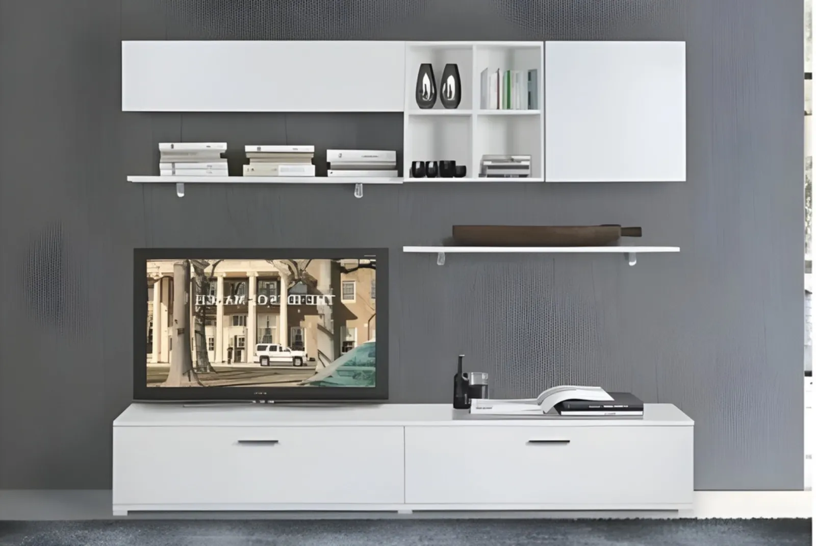 Questa Composizione Living ZG4 Bianco Frassinato “pronta consegna” è la soluzione perfetta per chi desidera un complemento d’arredo elegante, funzionale e versatile. Offre ampio spazio per riporre libri, TV, oggetti decorativi e molto altro ancora. Il suo design moderno e raffinato si adatta perfettamente a qualsiasi stile d’arredo.