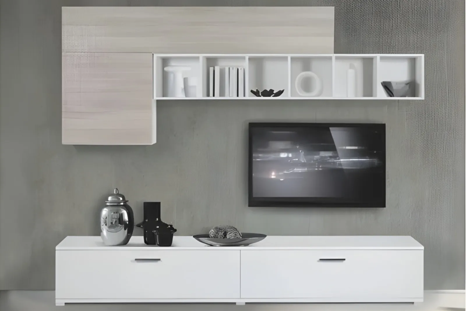 Questa Composizione Living ZG6 Olmo-Bianco Frassinato “pronta consegna” è la soluzione perfetta per chi desidera un complemento d’arredo elegante, funzionale e versatile. Offre ampio spazio per riporre libri, TV, oggetti decorativi e molto altro ancora. Il suo design moderno e raffinato si adatta perfettamente a qualsiasi stile d’arredo.