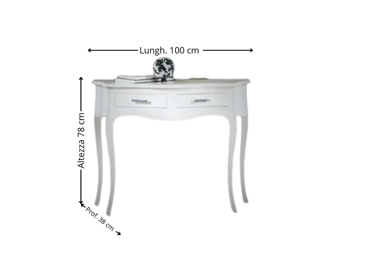 | Dimensioni Consolle | Lunghezza 100 cm – Profondità 38 cm – Altezza 78 cm |