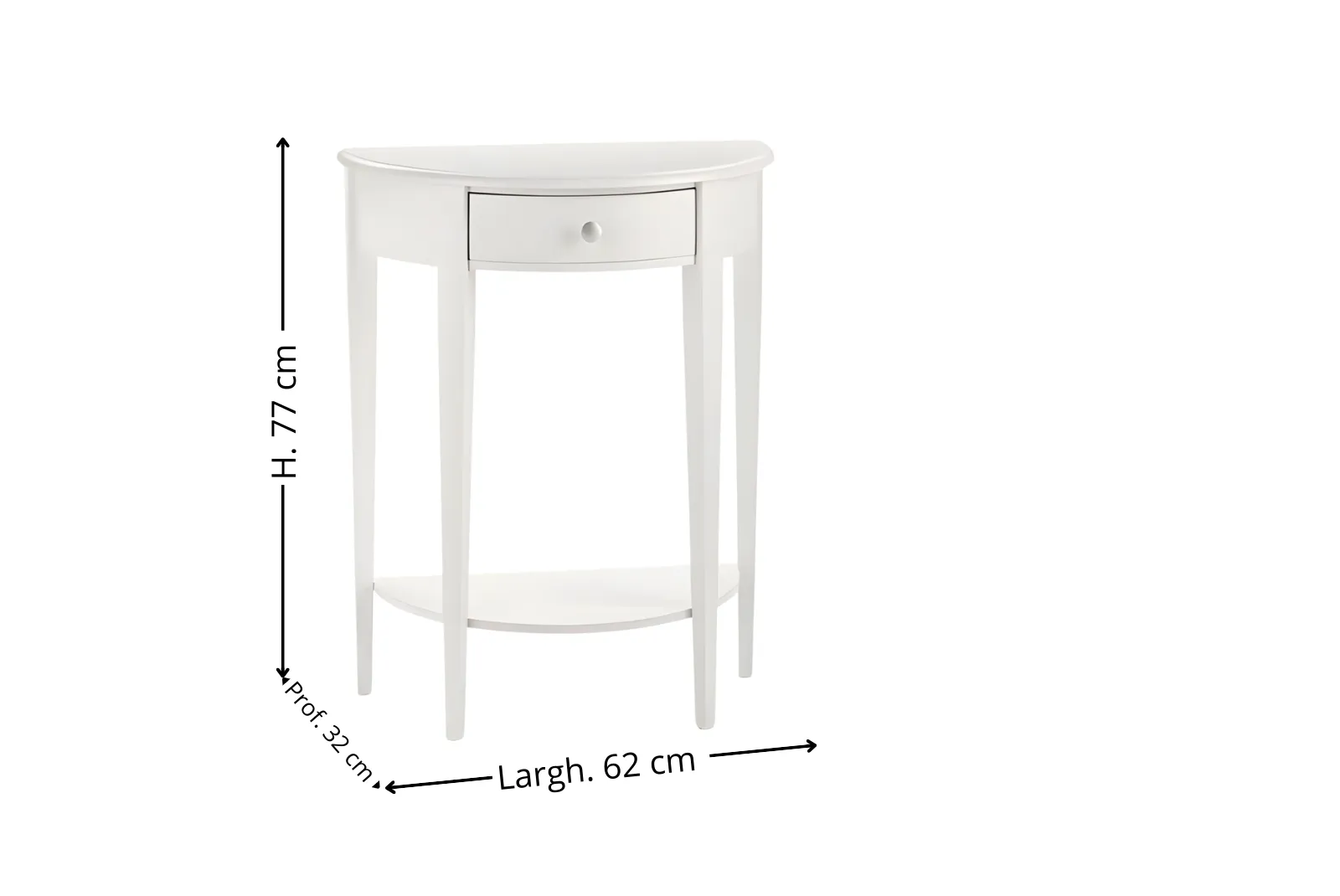 | Dimensioni Consolle | Larghezza 62 – Profondità 32 – Altezza 77 cm |