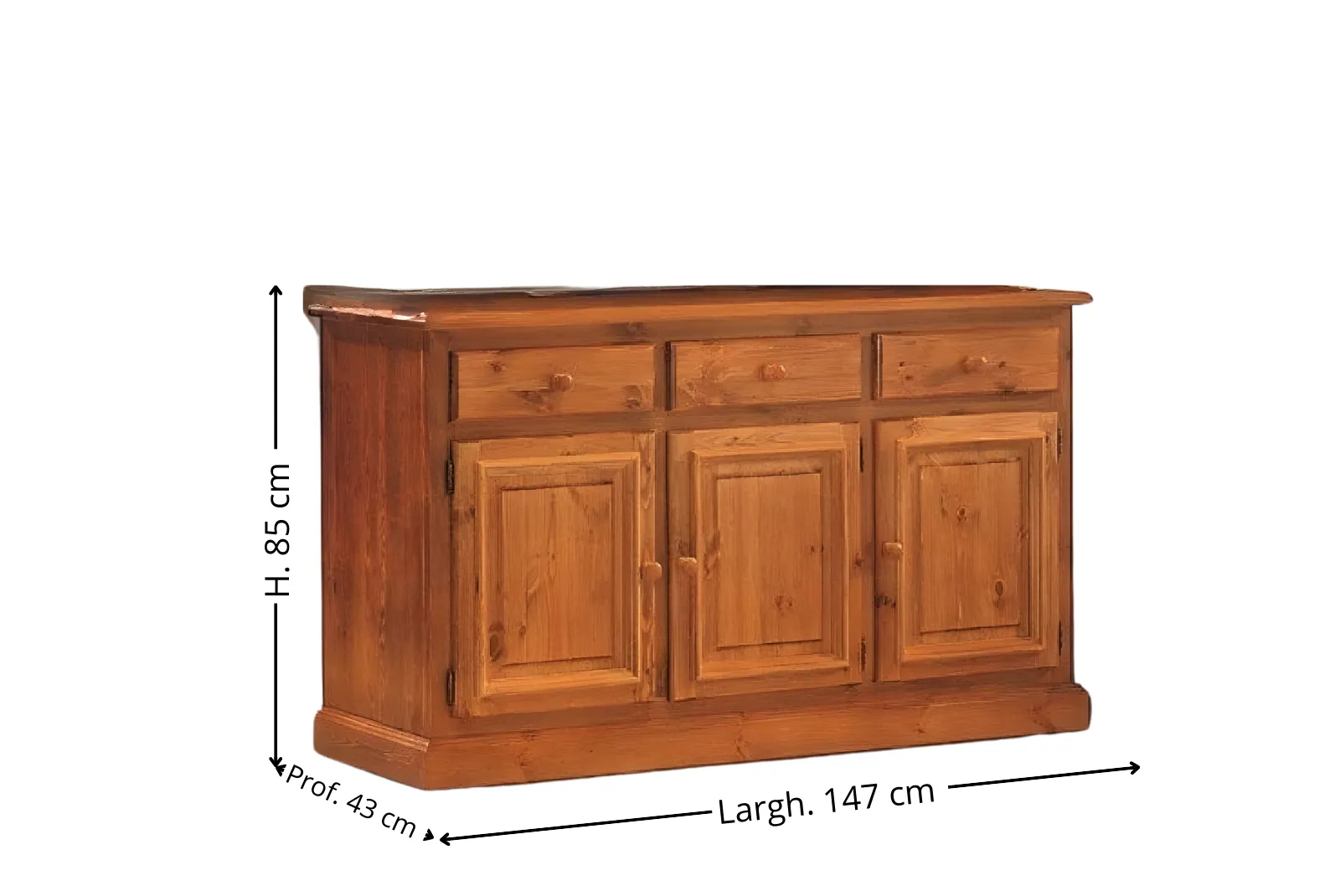 | Dimensioni Credenza | Larghezza 147 – Profondità 43 – Altezza 85 cm |