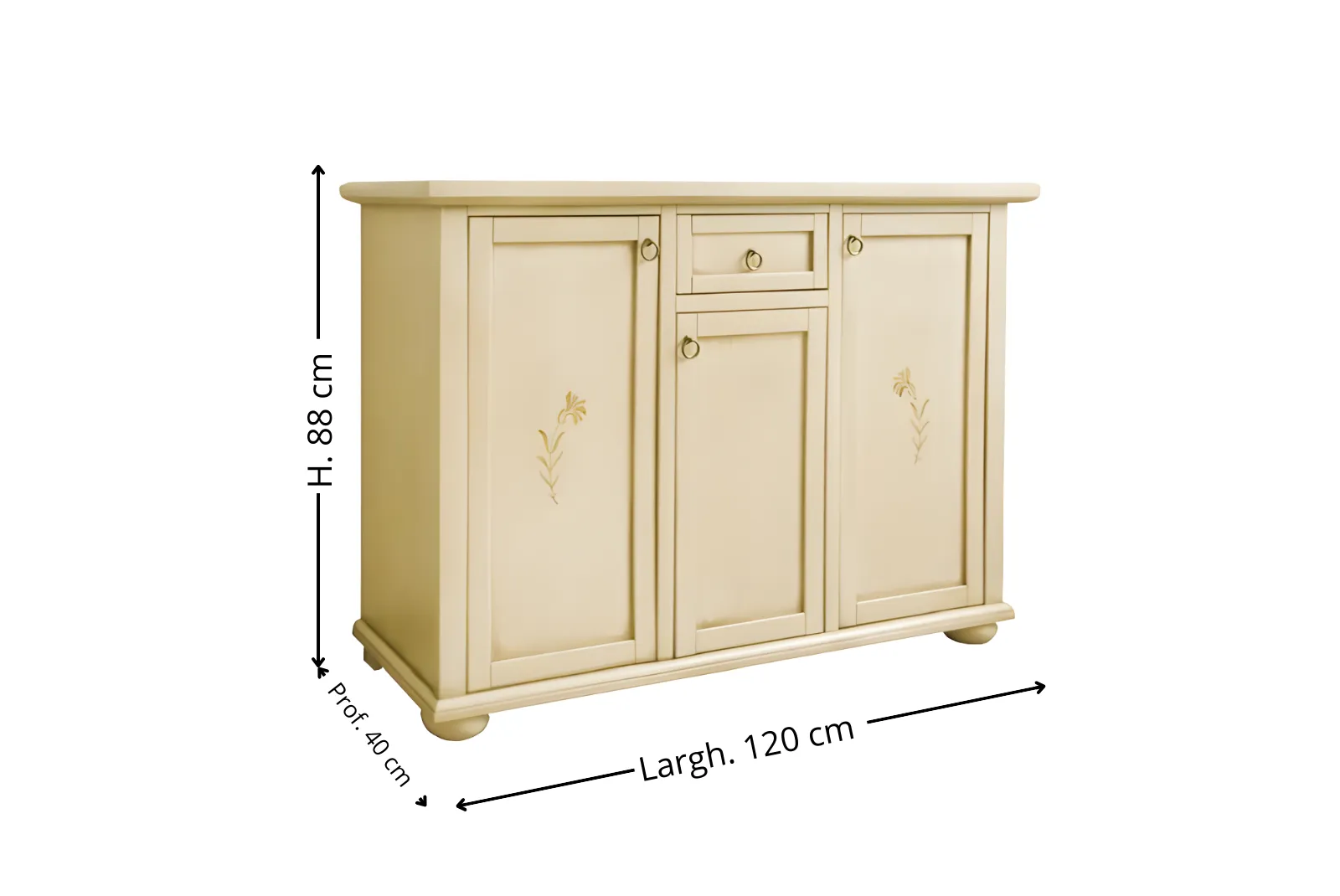 | Dimensioni Credenzina | Larghezza 120 – Profondità 40 – Altezza 88 cm |