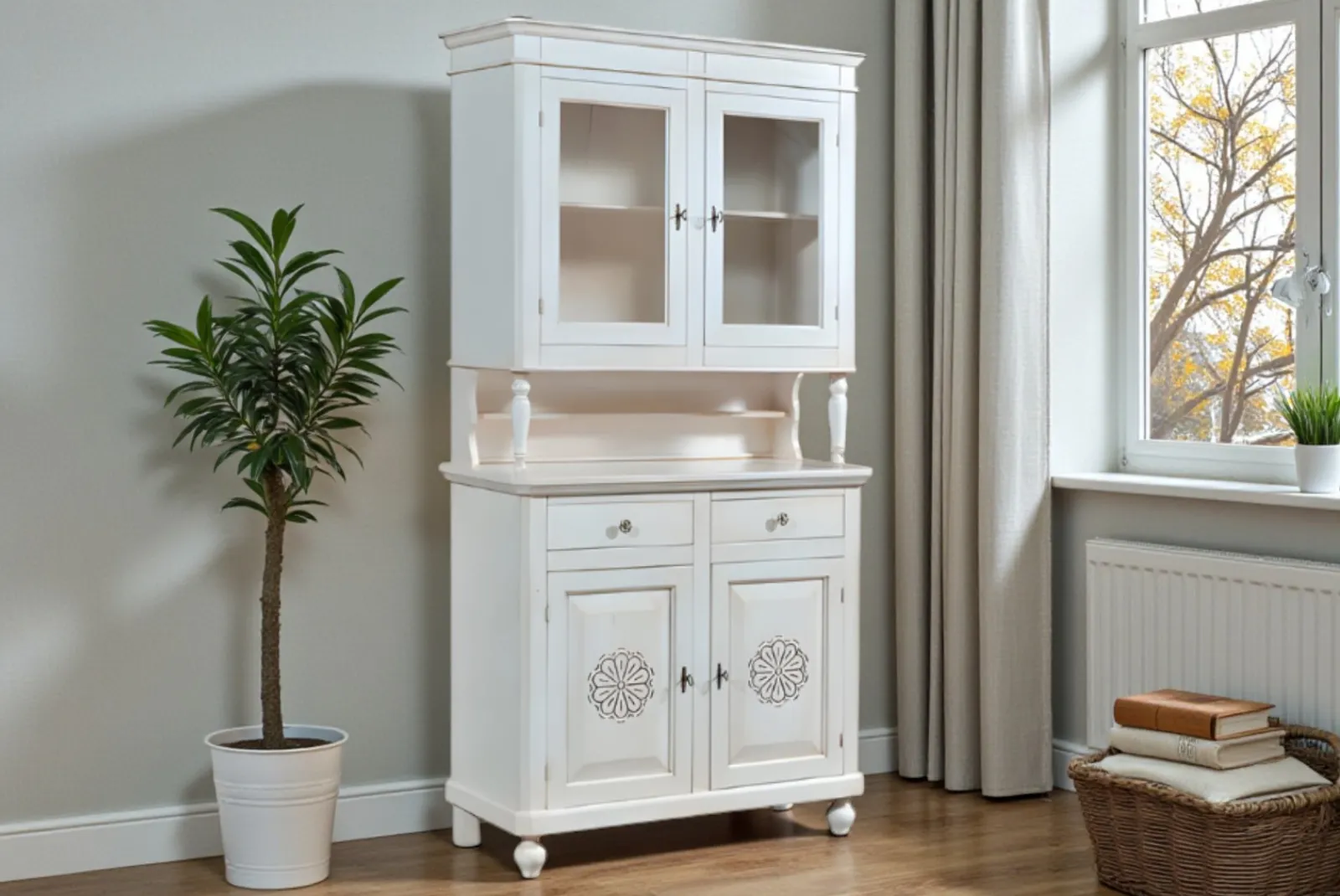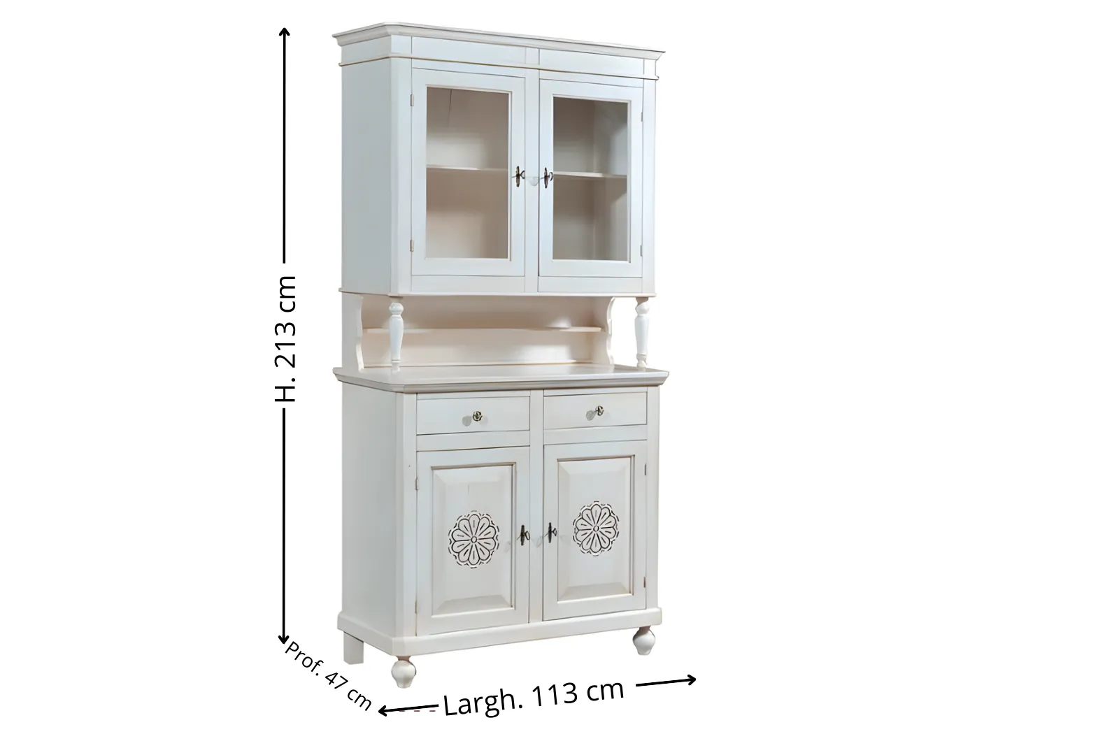 - Modello: Cristalliera 2 porte intagliata Bianco