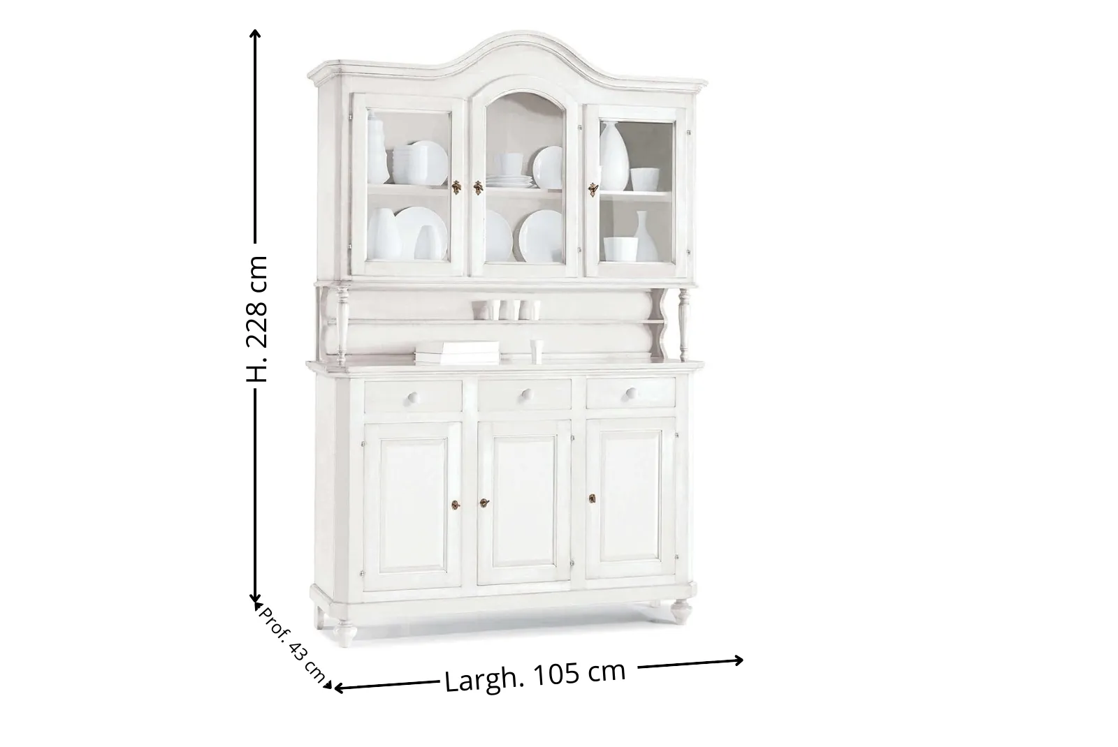 | Dimensioni Cristalliera | Larghezza 150 – Profondità 43 – Altezza 228 cm |
