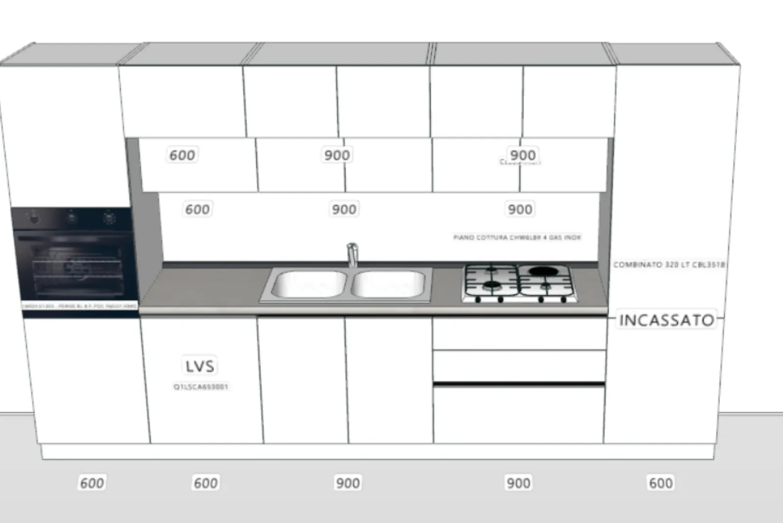 - 01 Cappa: incasso integrata nel mobile da 90 cm