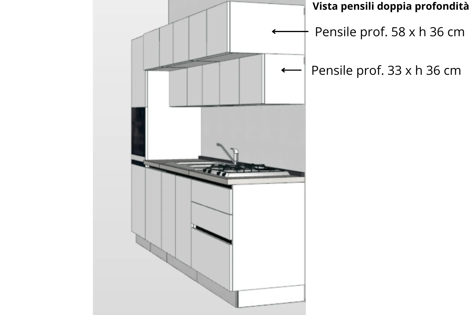 Pronta consegna! Sfrutta questa fantastica opportunità per arredare la tua cucina con la moderna e funzionale Cucina Cloè , con doppio pensili , pensili alti con profondità delle colonne .