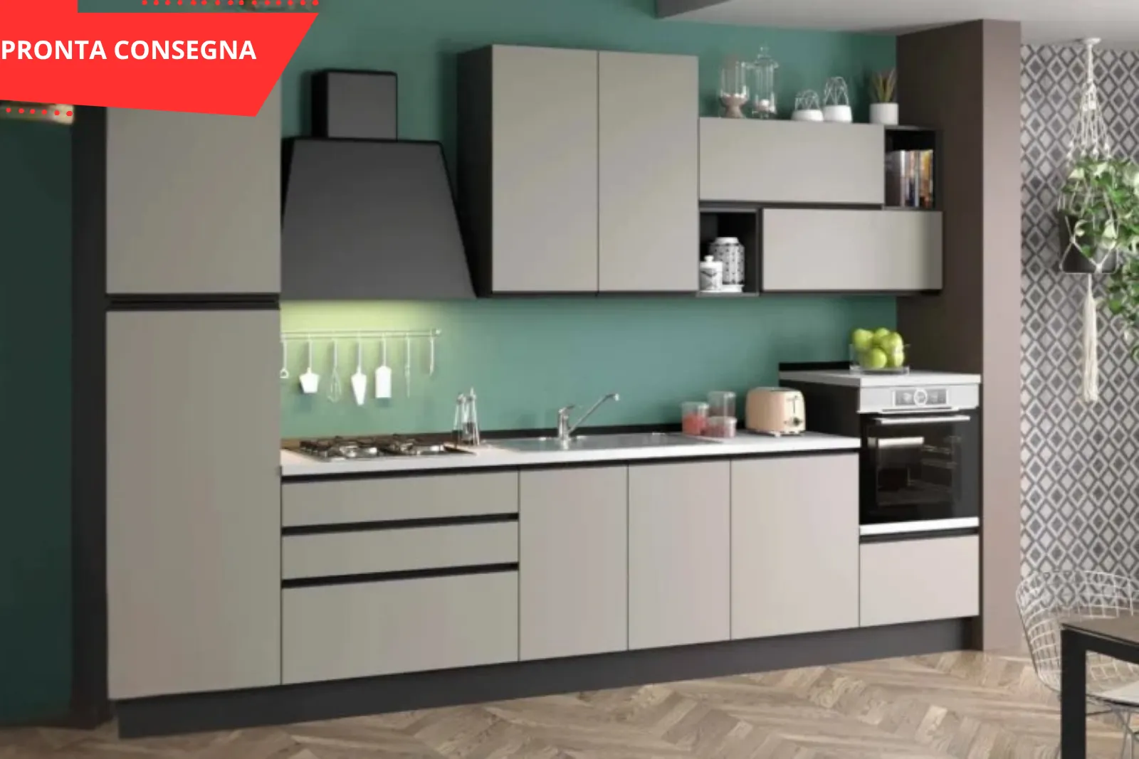 La Cucina Gemma 360 Tortora rappresenta l’unione perfetta di design moderno , funzionale , elegante composizione dinamica, pratica e compatta. Si adatta ad ogni tipo di ambiente. Le sue dimensioni contenute e la configurazione reversibile destra/sinistra la rendono ideale per arredare qualsiasi spazio della tua cucina. Pronta consegna! Sfrutta questa fantastica opportunità per arredare la tua zona pranzo con la moderna e funzionale cucina Gemma.