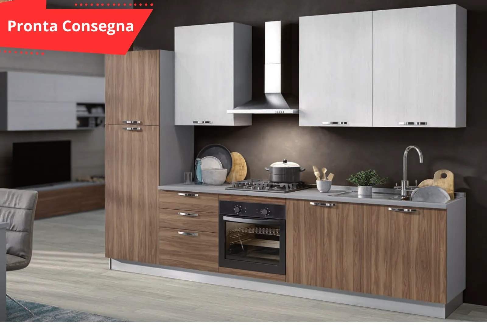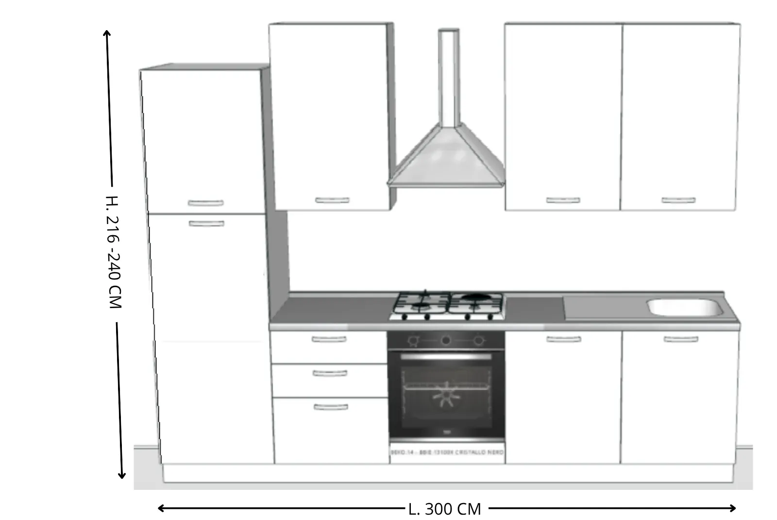 Pronta consegna! Sfrutta questa fantastica opportunità per arredare la tua cucina con la moderna e funzionale Cucina Sara L 300 cm – H 216/240 cm