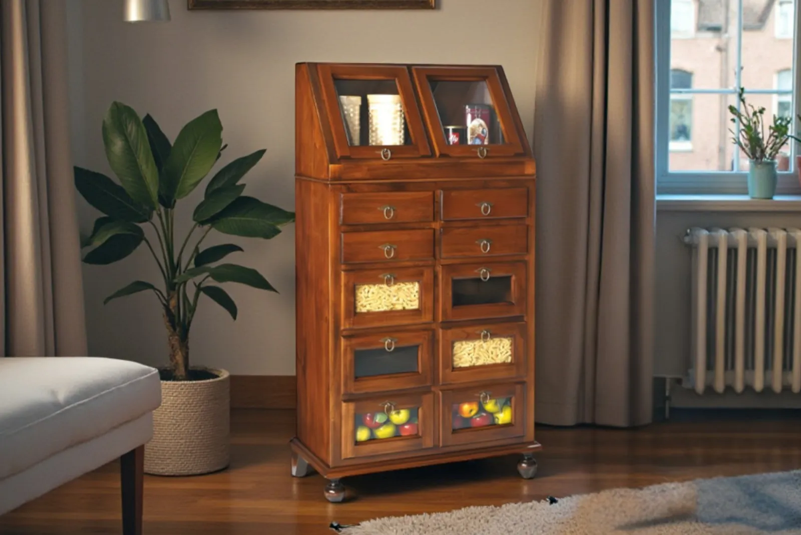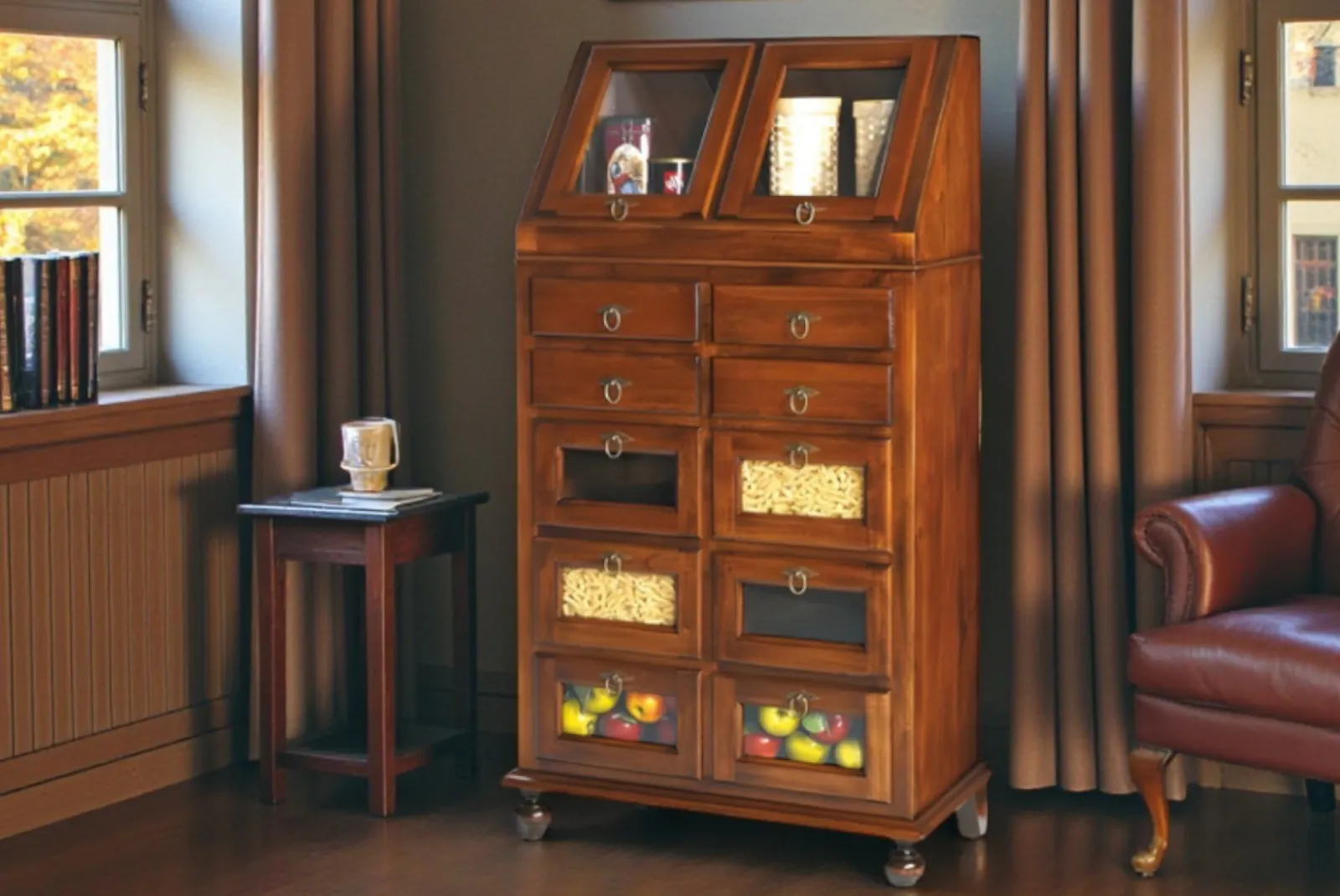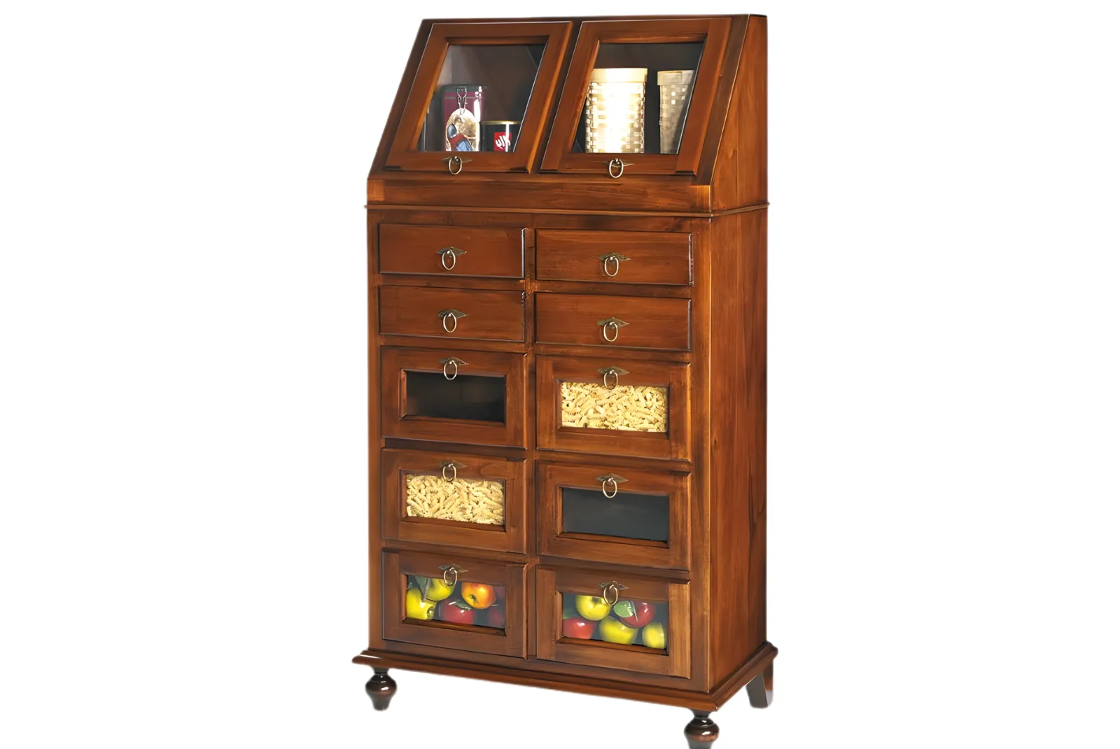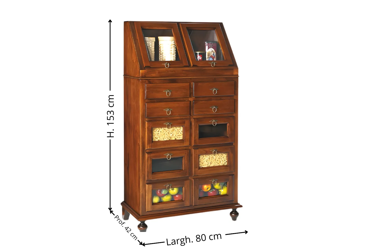La dispensa 10 cassetti 2 ribalte L.80 è realizzata a mano con maestria è un complemento d’arredo estremamente pratico e versatile, ideale per organizzare e ottimizzare lo spazio in cucina o in altre aree della casa.