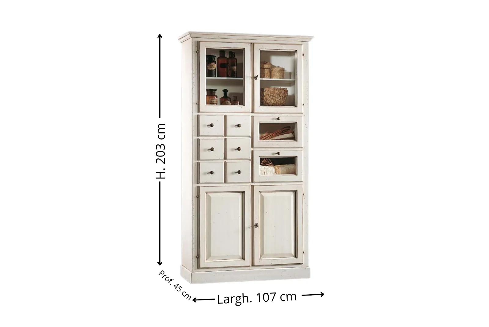 | Dimensioni Dispensa | Larghezza 107 – Profondità 45 – Altezza 203 cm |