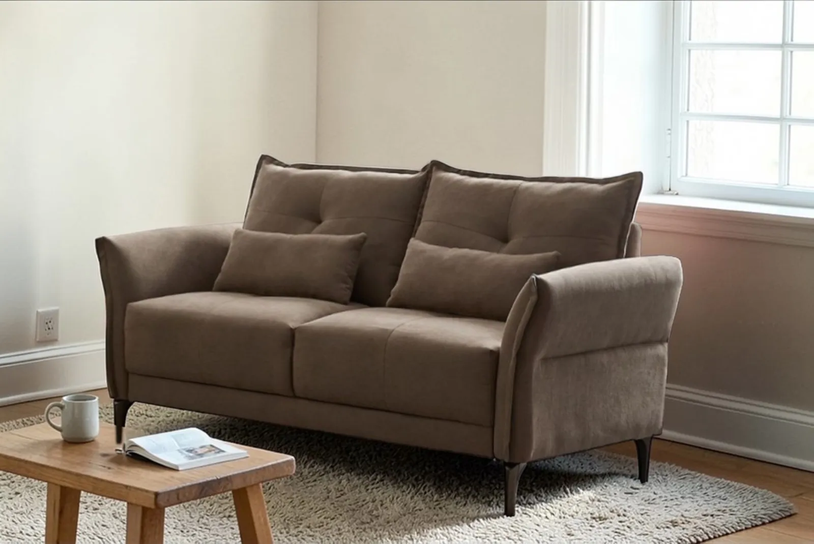 Il divano 2 posti Nutmeg tessuto Beige è compatto, elegante e accogliente  rappresenta la scelta ideale per chi cerca comfort e stile in un’unica soluzione. Il suo design semplice ma raffinato si adatta perfettamente a qualsiasi ambiente, dal soggiorno moderno alla zona giorno più classica.