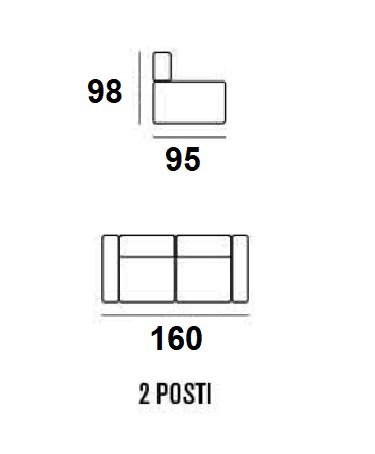 | Dimensioni 2 Posti | L.160 – Prof. divano 95 – Altezza Schienale 98 cm |