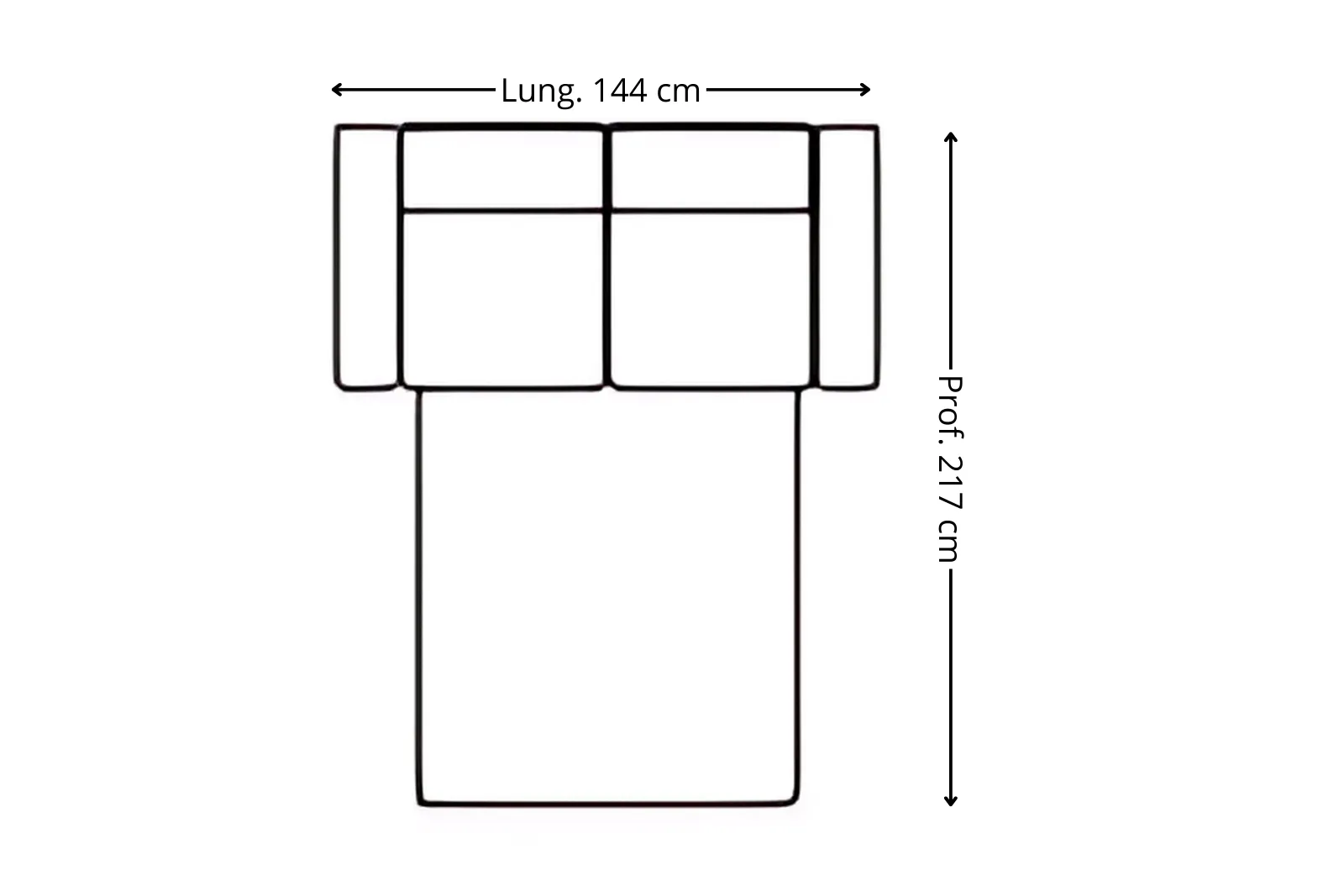 Dimensione aperto: Larghezza 144 – Profondità 217 cm – Altezza schienale 94 cm