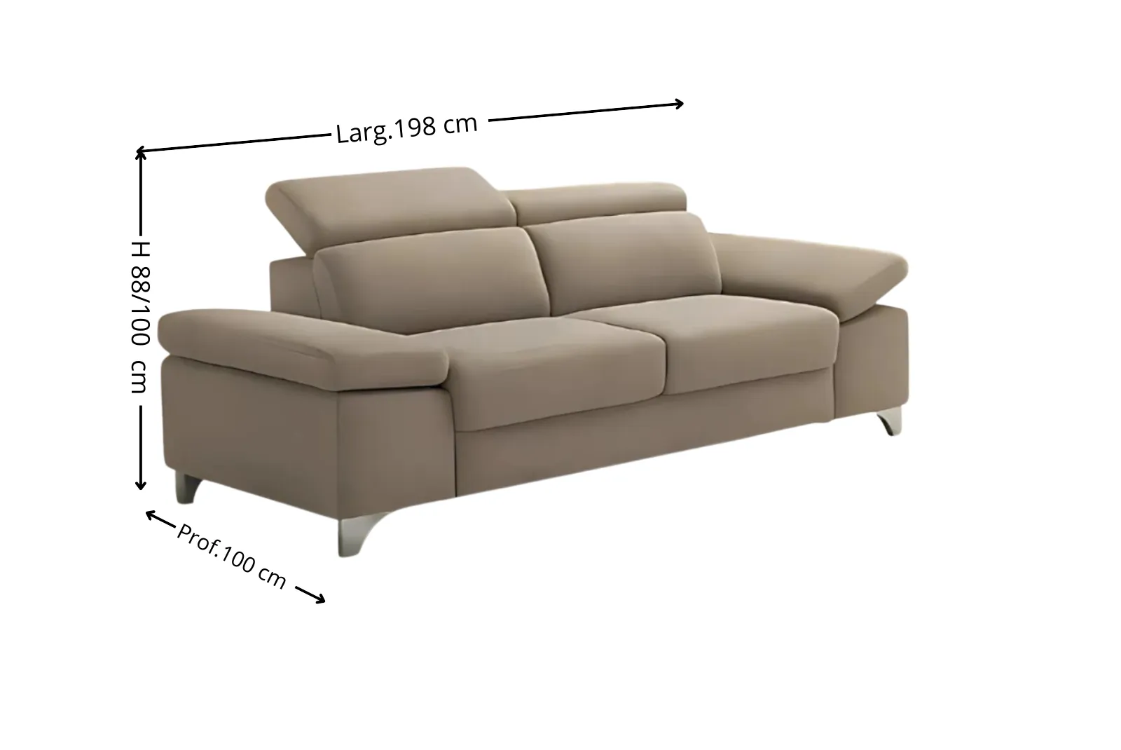 - Dimensioni: Larghezza 198 – Profondità 100 – Altezza 88/100