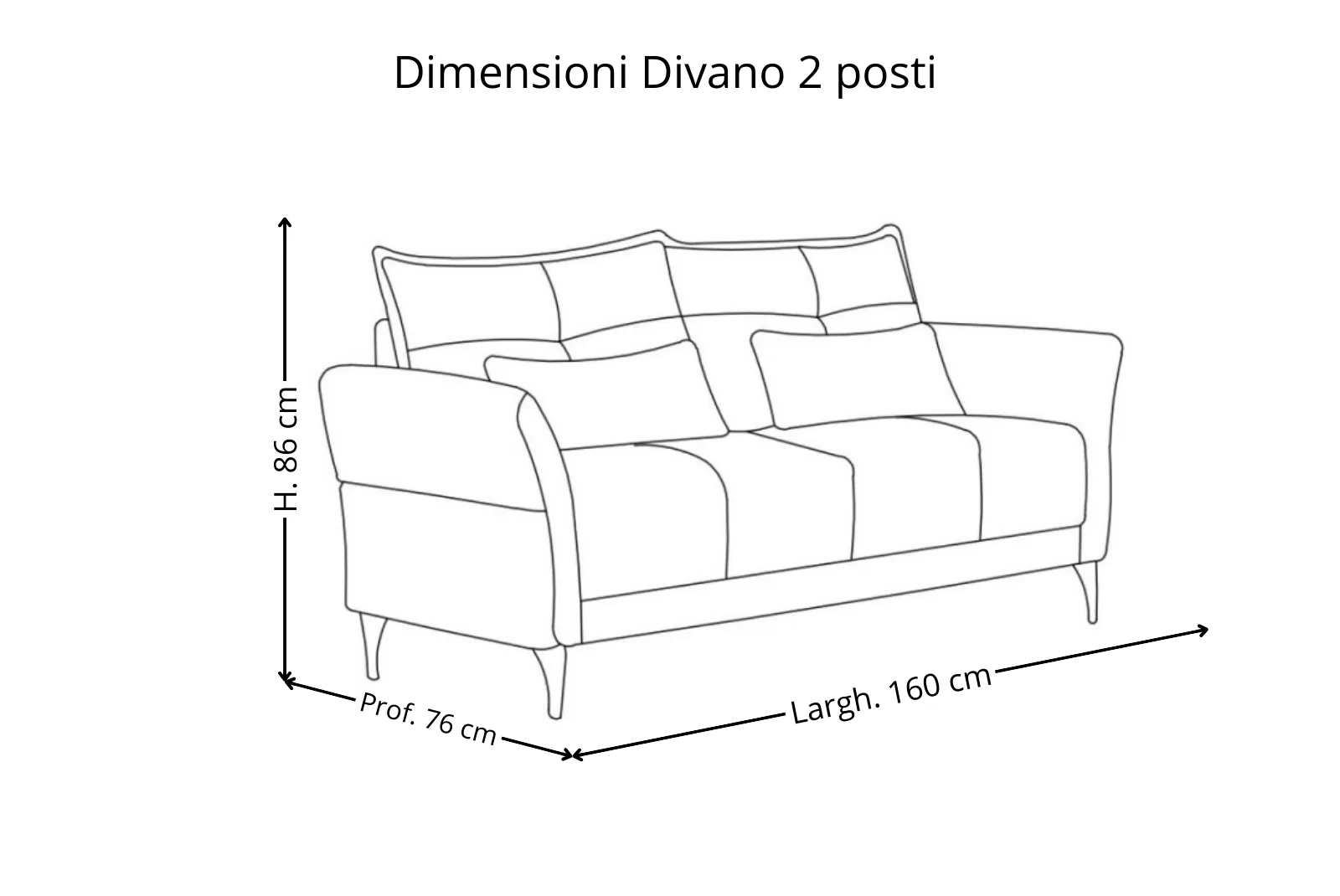 Larghezza 160 – Profondità 76 – Altezza 86 cm H. seduta 47 cm