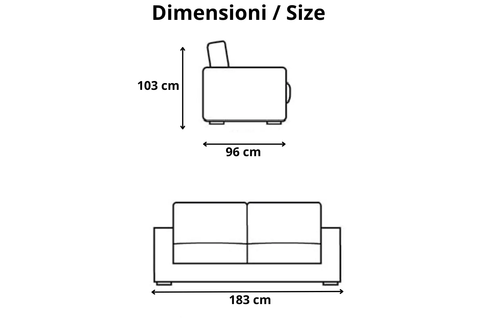 | Dimensioni Divano 3 Posti Achille | Dimensioni chiuso: Larghezza 183 x Profondità 96 x Altezza 103 cm |