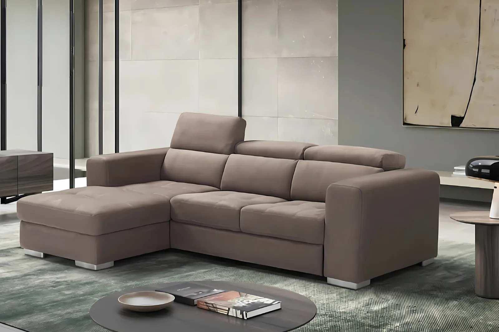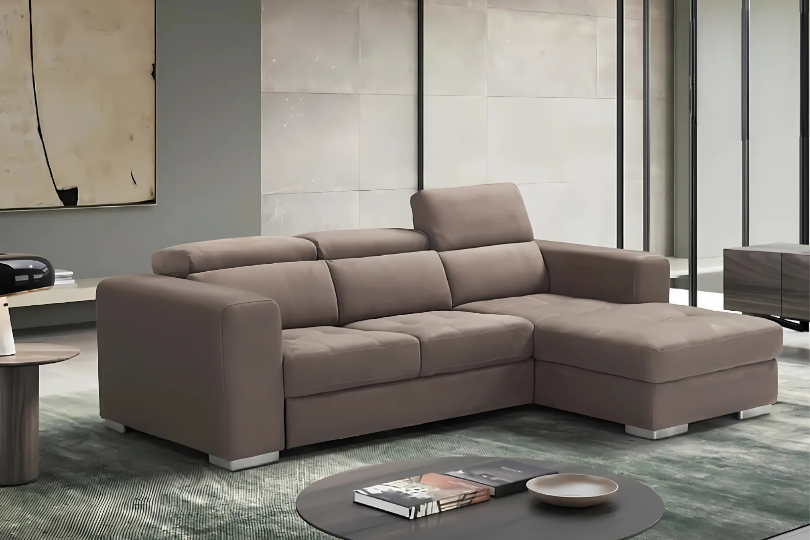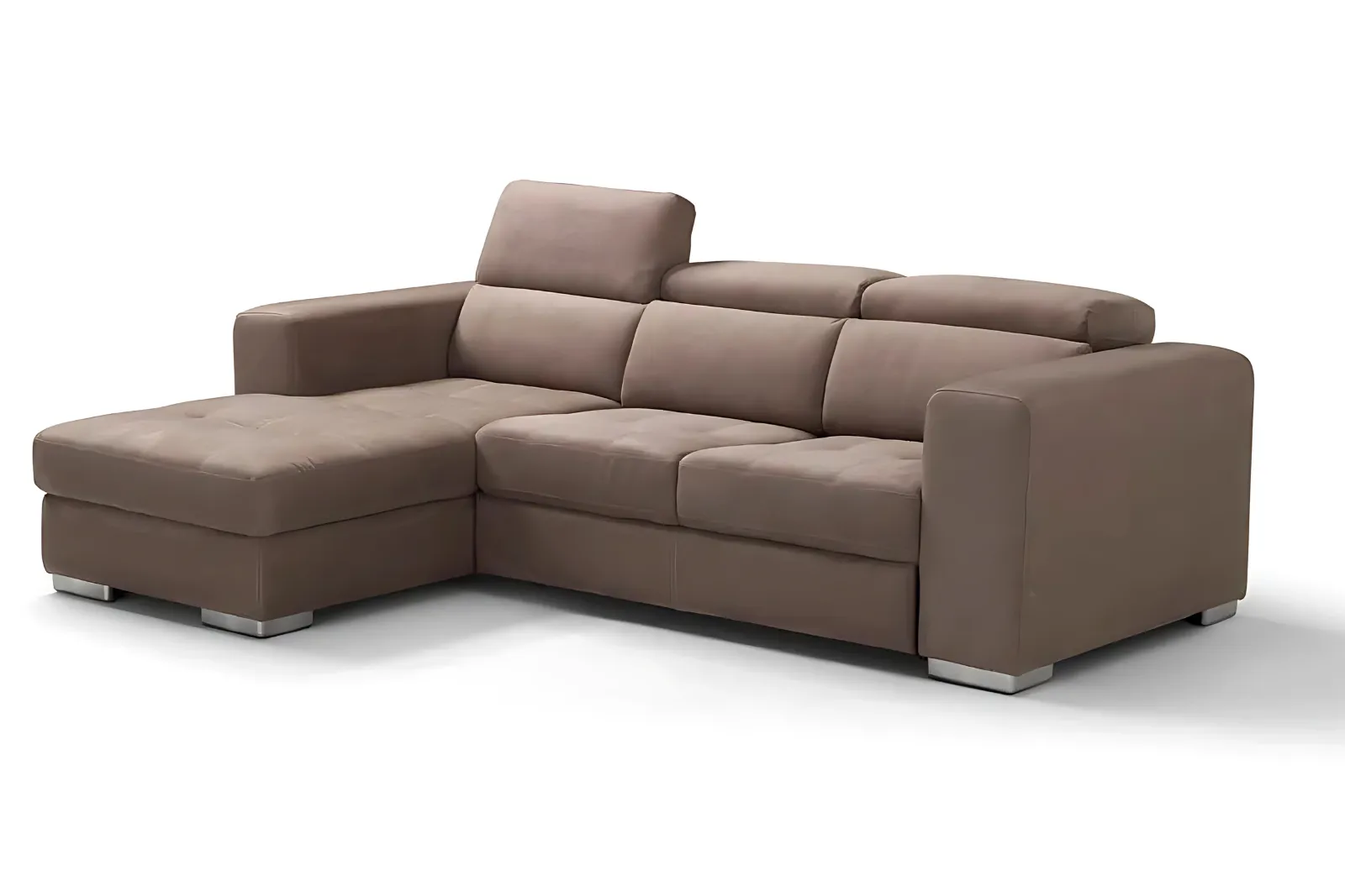 Divano angolare Mirò Vera Pelle Spessorata con letto estraibile a scorrimento è la soluzione ideale per chi cerca un complemento d’arredo funzionale, confortevole e raffinato. Perfetto per arredare il tuo soggiorno living , il divano si distingue per il suo design moderno e accogliente che ti permette di goderti momenti di relax senza paragoni.