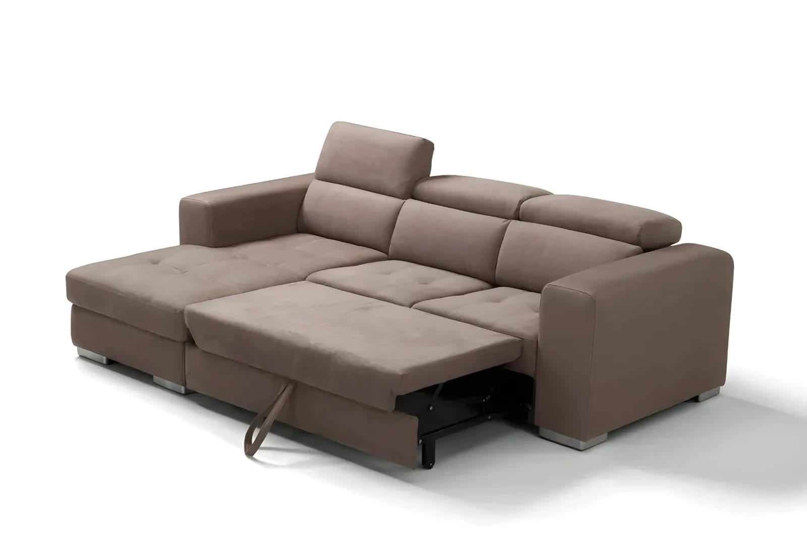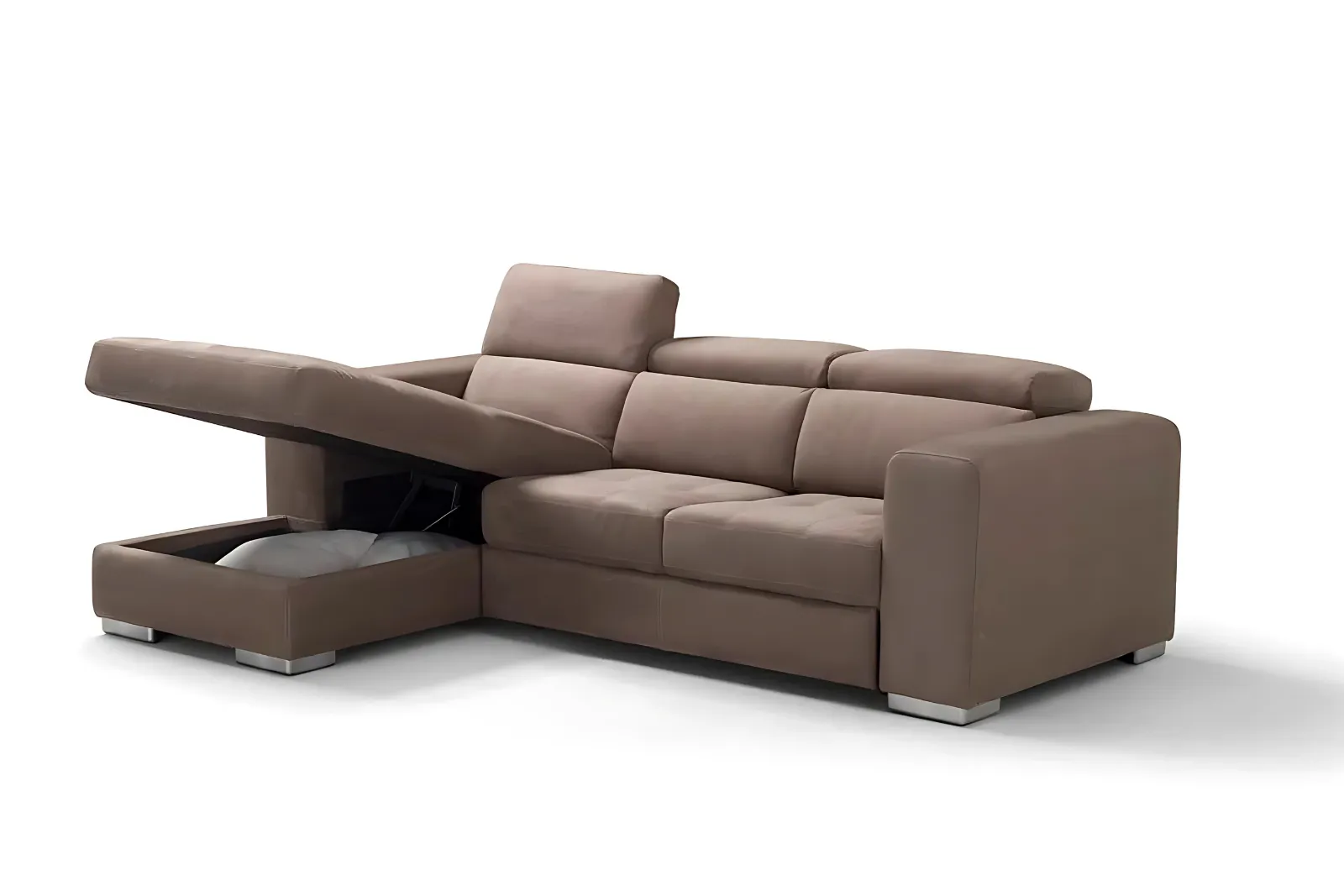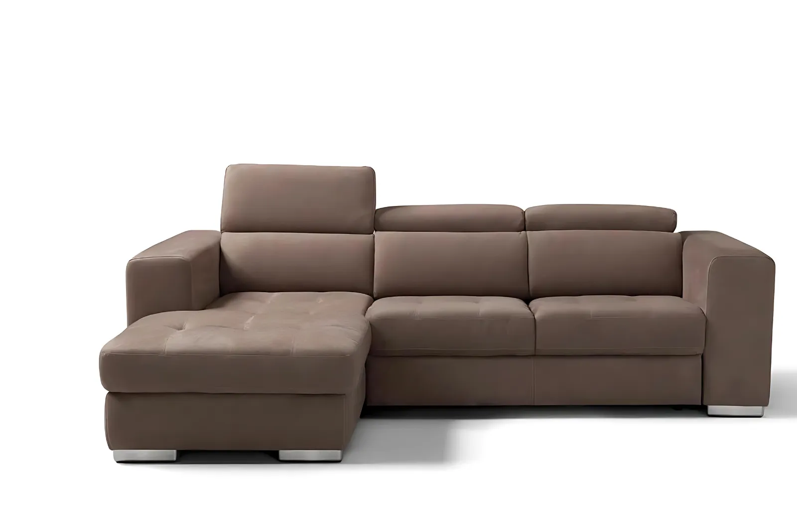 Divano angolare Mirò Vera Pelle Spessorata con letto estraibile a scorrimento è la soluzione ideale per chi cerca un complemento d’arredo funzionale, confortevole e raffinato. Perfetto per arredare il tuo soggiorno living , il divano si distingue per il suo design moderno e accogliente che ti permette di goderti momenti di relax senza paragoni.