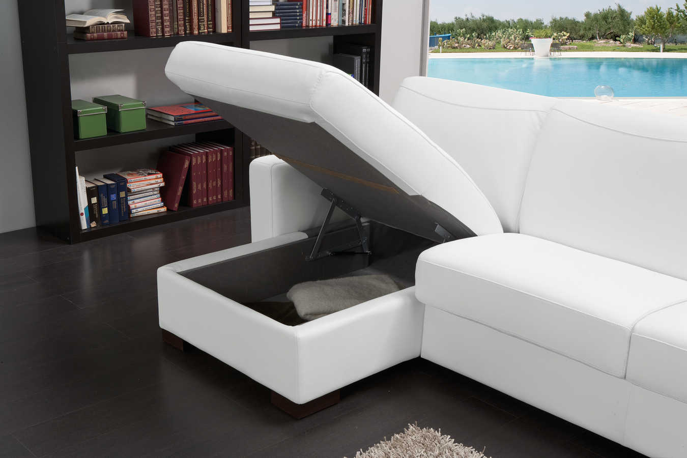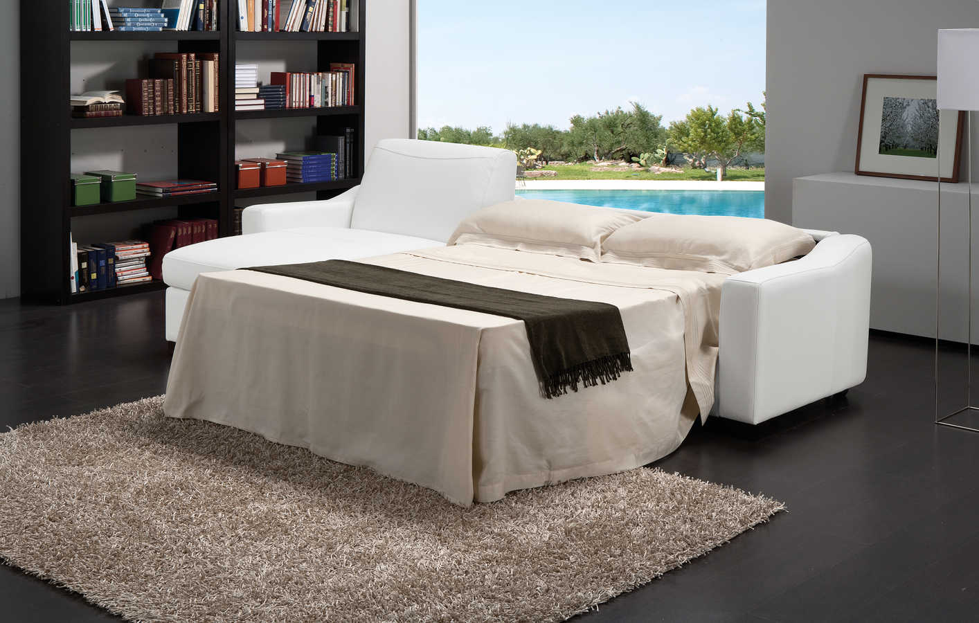 ( TRE POSTI CON BRACCIOLO + CHAISE LOUNGE CON CONTENITORE + LETTO ESTRAIBILE )