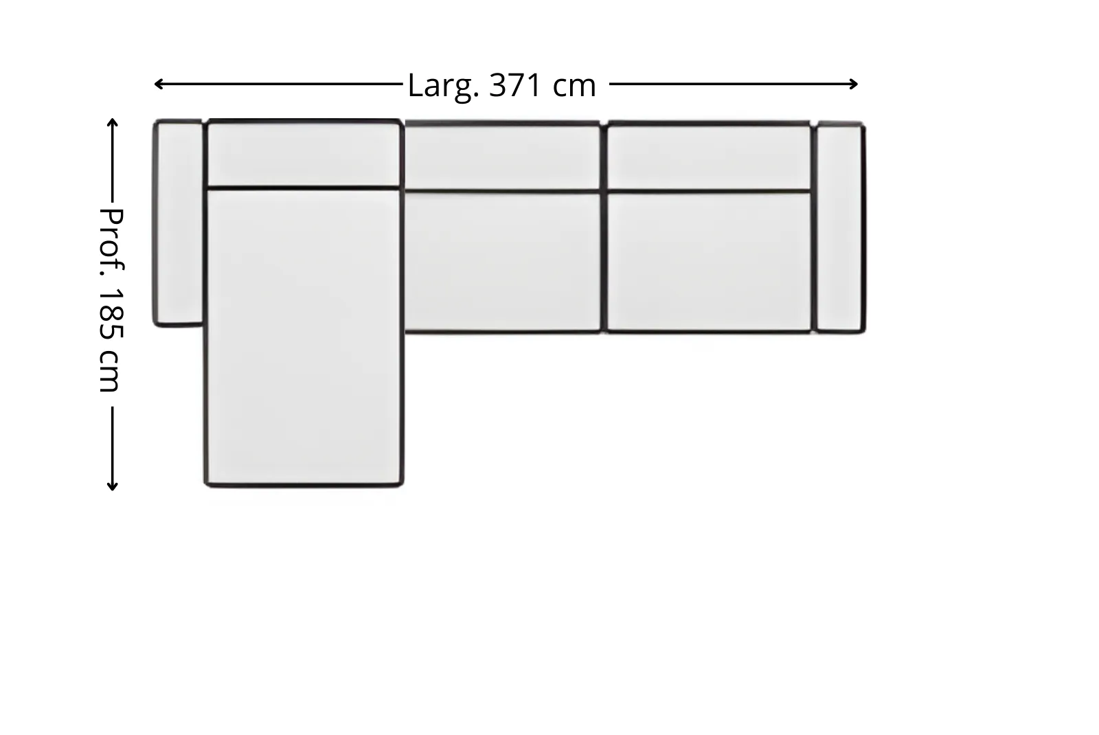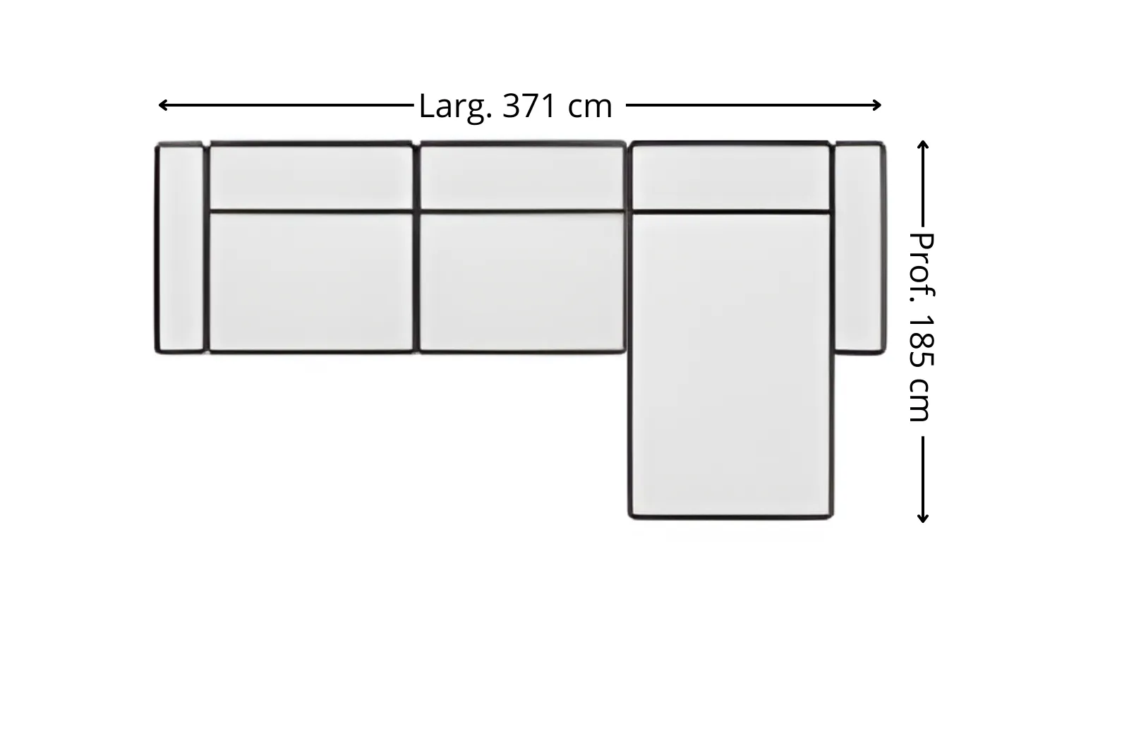 - Dimensioni: L.371×185 – Prof. divano 245 – Altezza schienale divano 90 cm