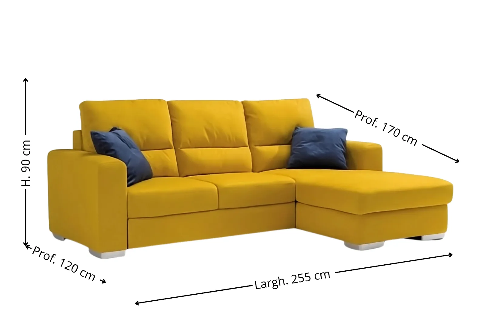 - Dimensioni: L.255×170 – Prof. 102 – Altezza schienale 90 cm