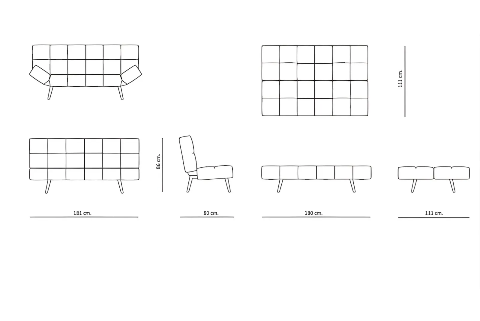 • Dimensioni: L.181 – Prof.81 – H.86 cm