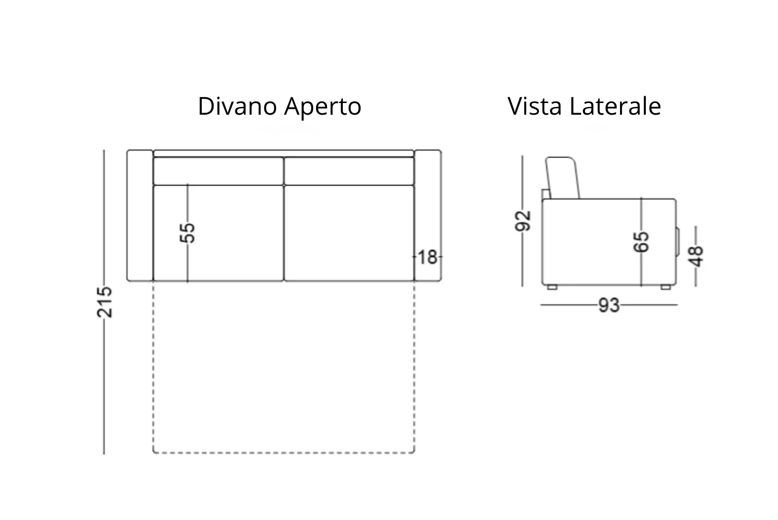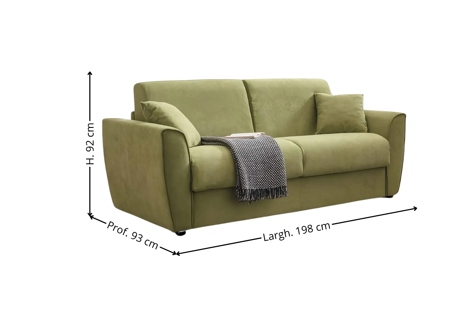 • Dimensioni divano aperto: Larghezza 198 – Profondità 215 – Altezza Schienale 92 cm