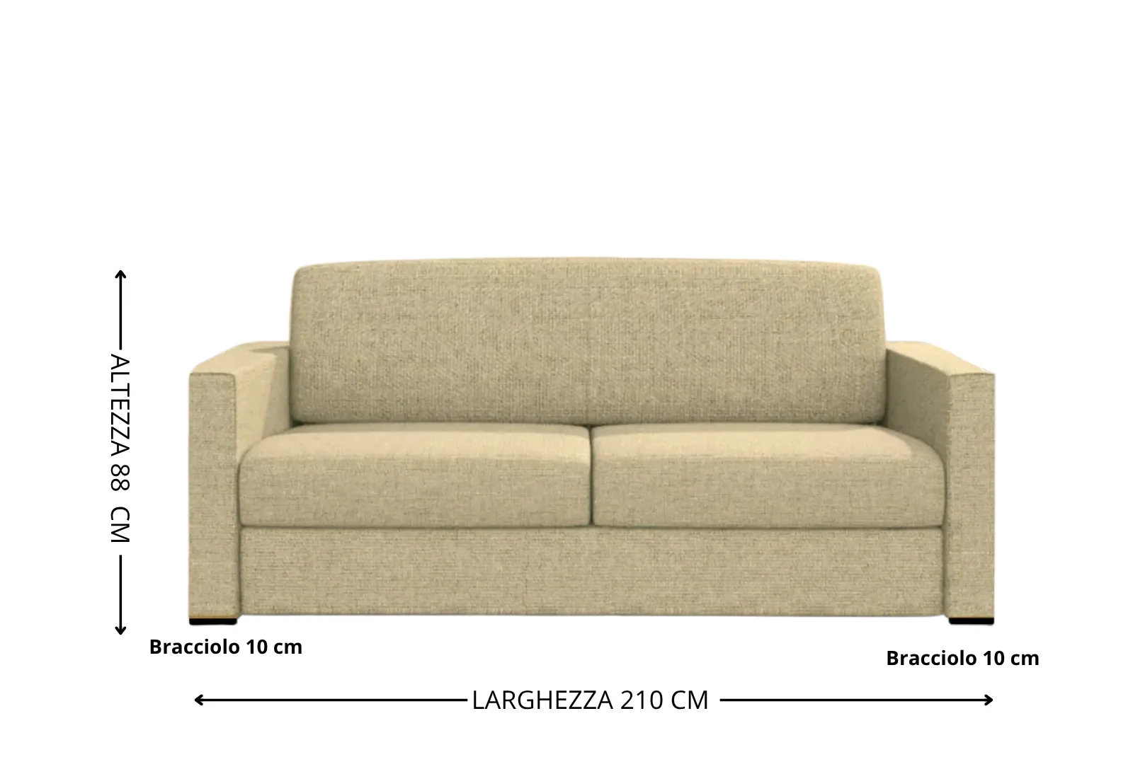 - Dimensioni divano Chiuso: Larghezza 210 – Profondità 95 – Altezza Schienale 88 cm