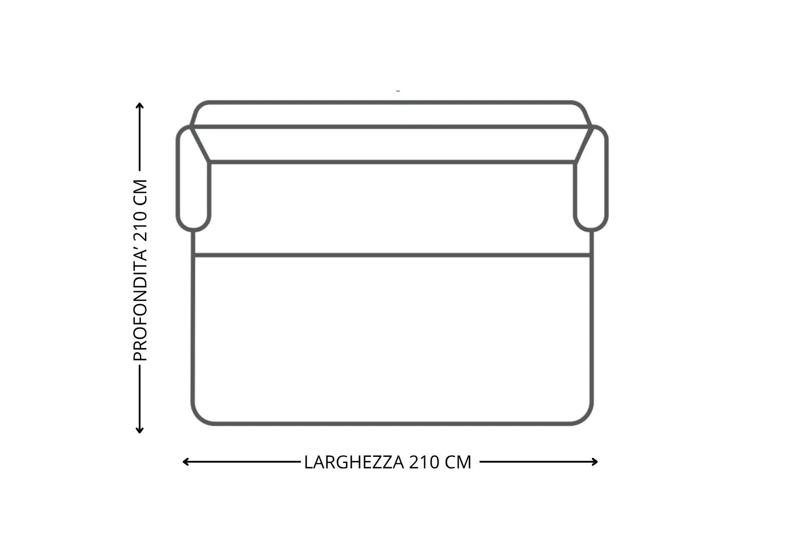 - Dimensioni divano Aperto: Larghezza 210 – Profondità 210 – Altezza Schienale 88 cm