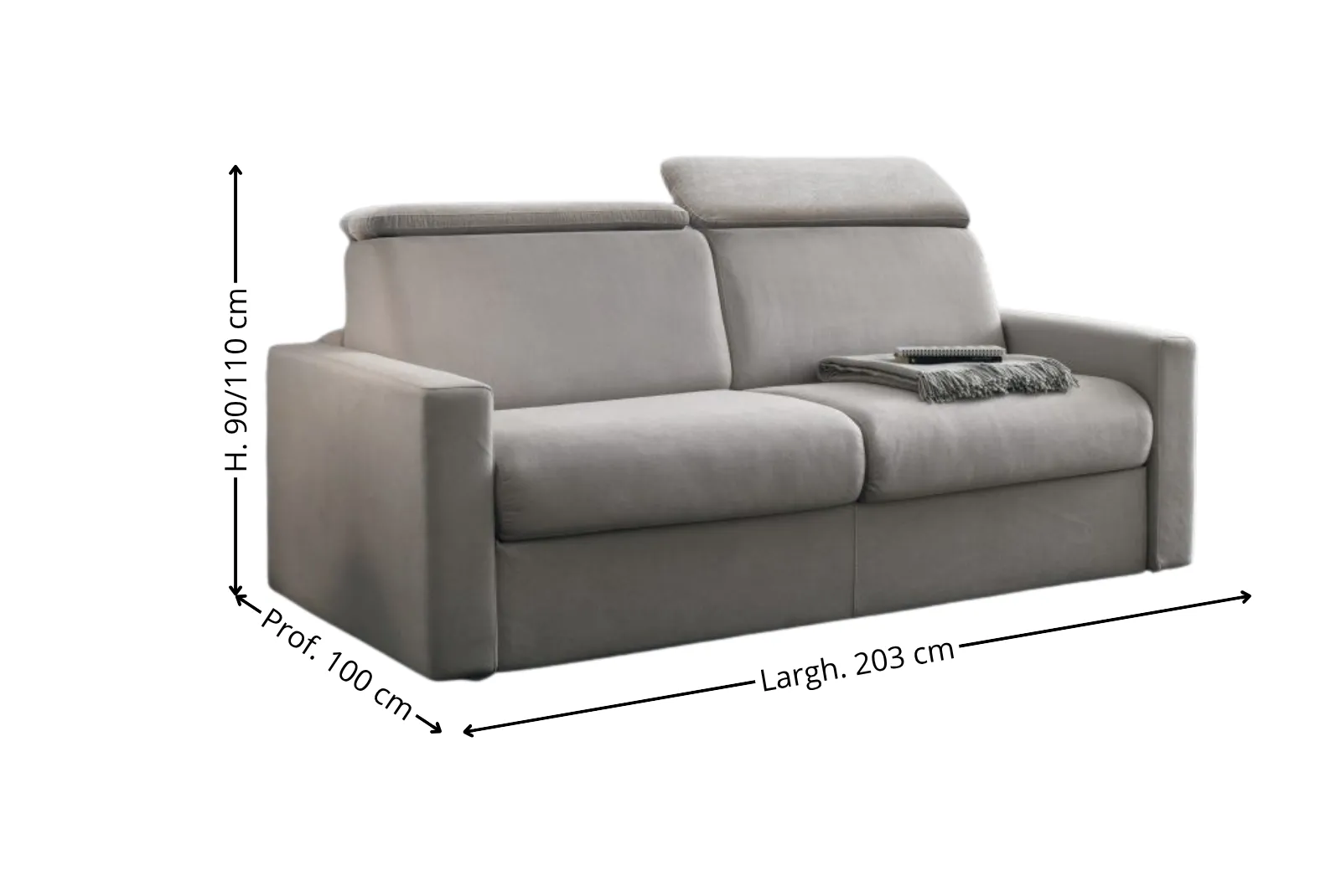 - Dimensioni chiuso: L.203 – Prof.100 – H. Schienale 90/110 cm
