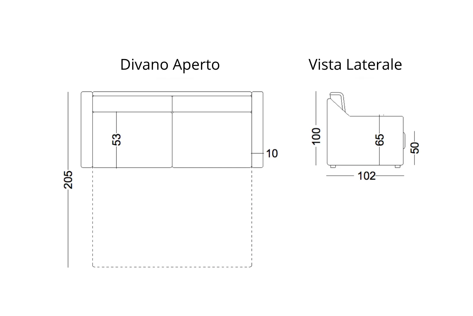 - Dimensioni chiuso: L.205 – Prof.102 – H. Schienale 100 cm