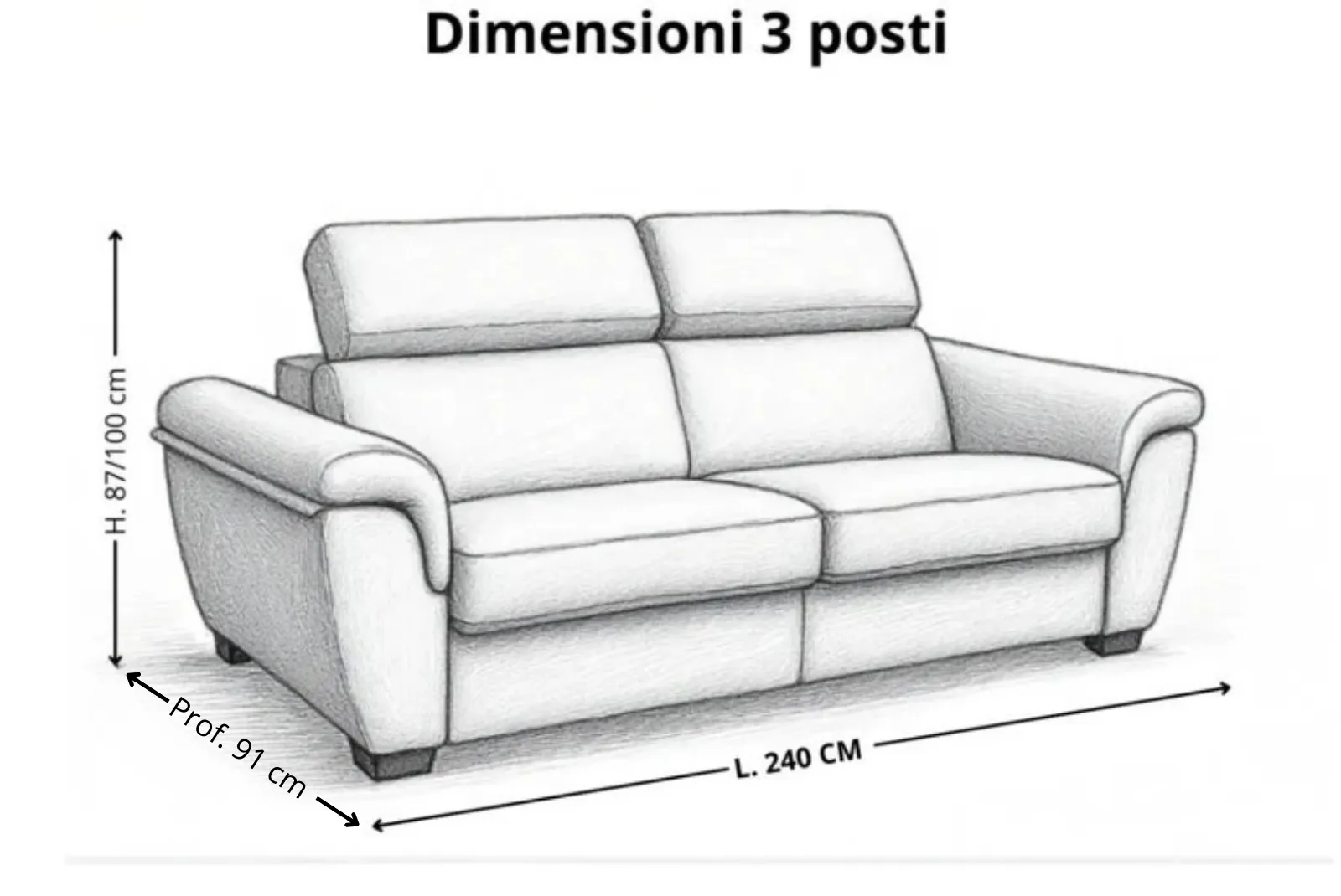 - Dimensioni: Larghezza 220 cm – Profondità 91 cm – Altezza Schienale 100 cm