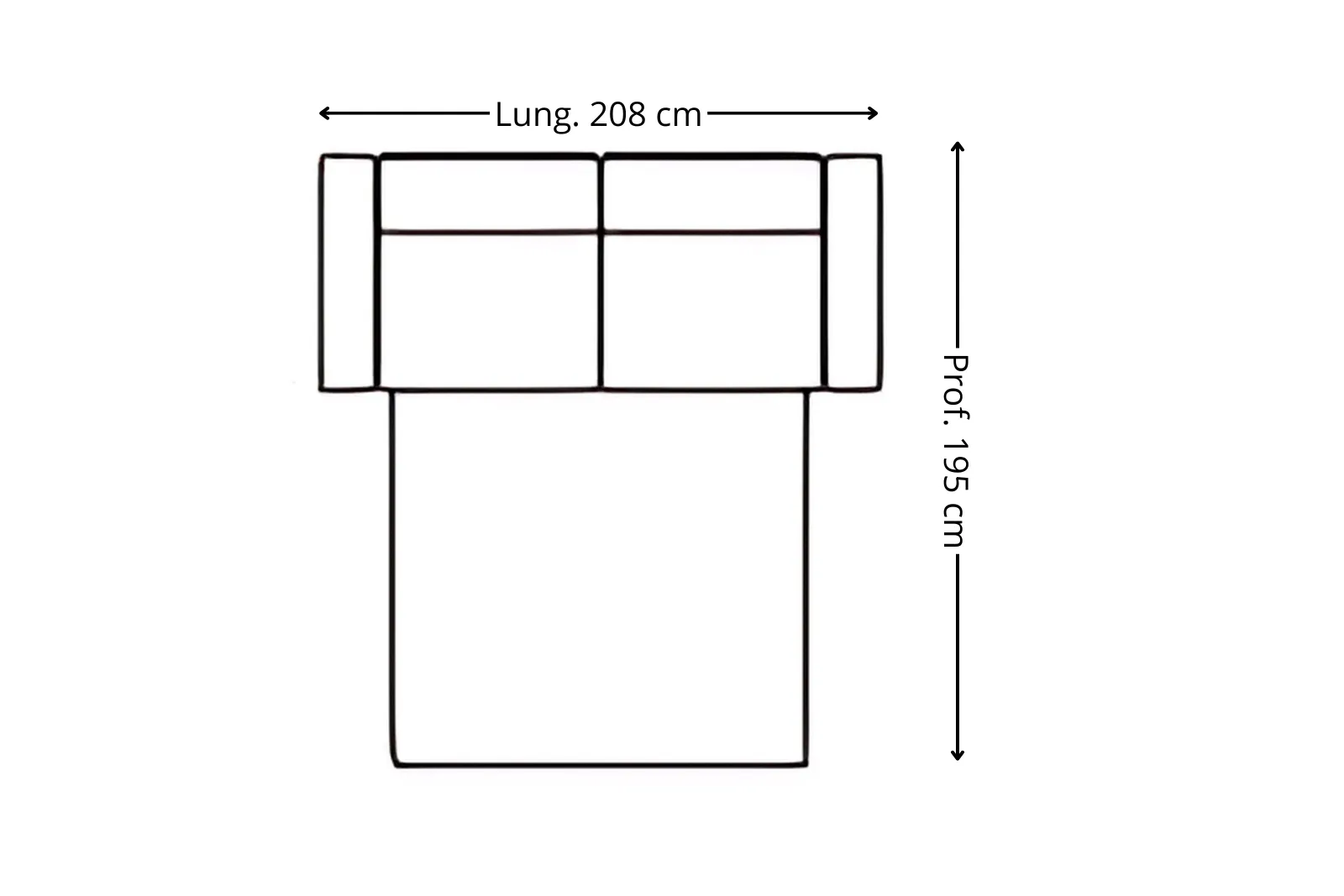 - Dimensioni: Larghezza 208 – Profondità 100 – Altezza Schienale 87/100 cm