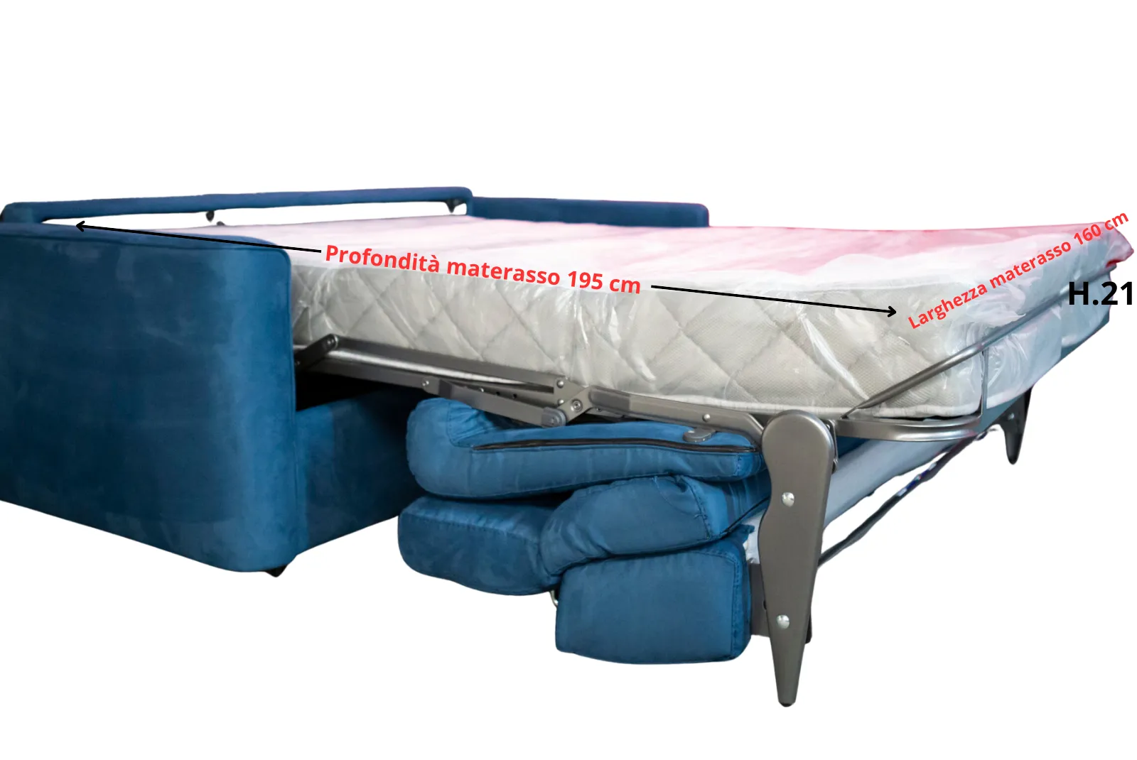- Materasso: Larghezza 160 x Prof.195 x Altezza 21 cm