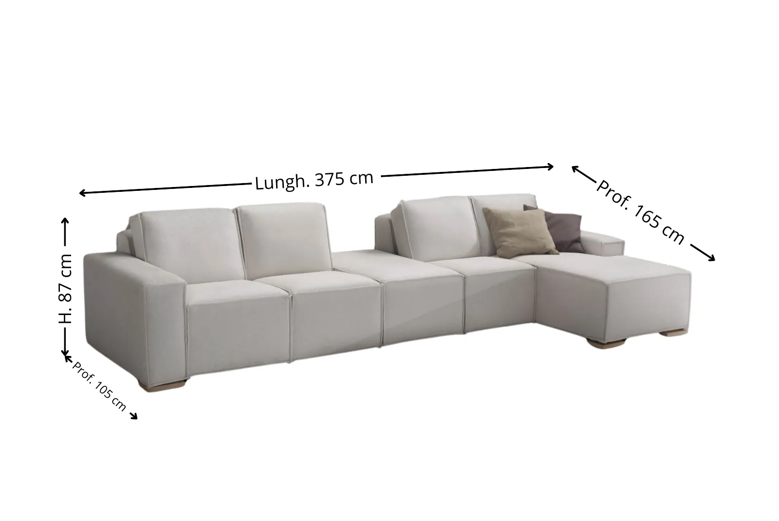 - Dimensioni: L.375×165 – Prof. divano 105 – Altezza schienale divano 87 cm