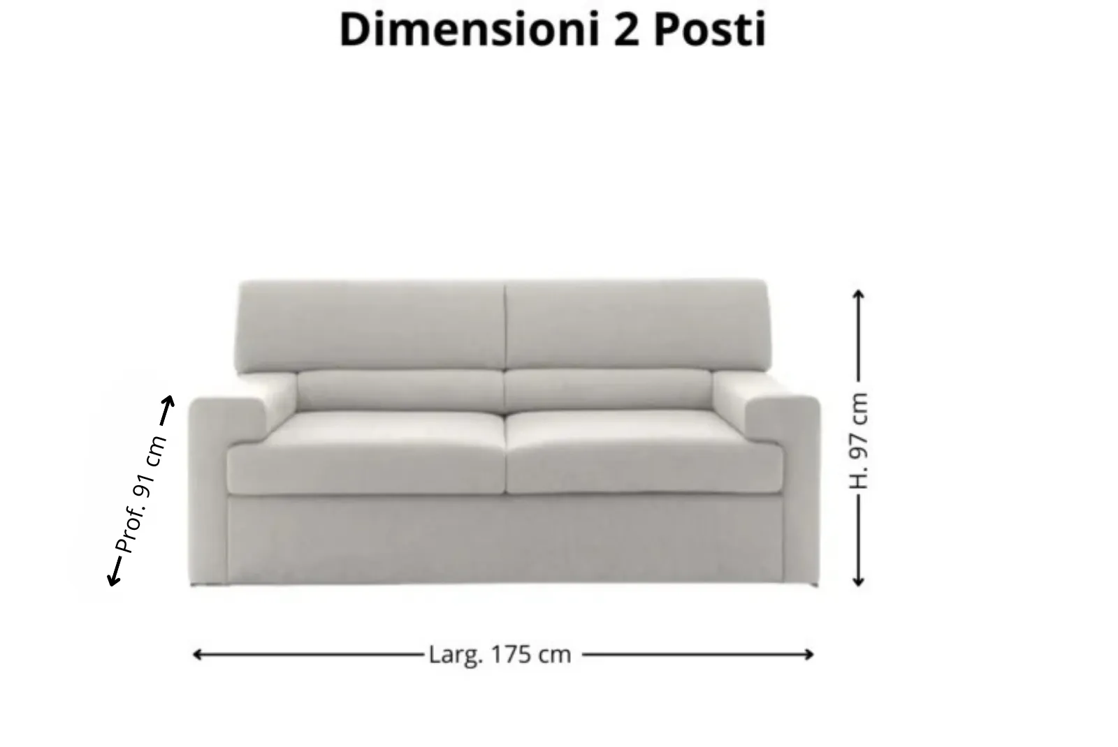 - Dimensioni Due posti: Larghezza 175 – Profondità 91 – Altezza Schienale 97 cm