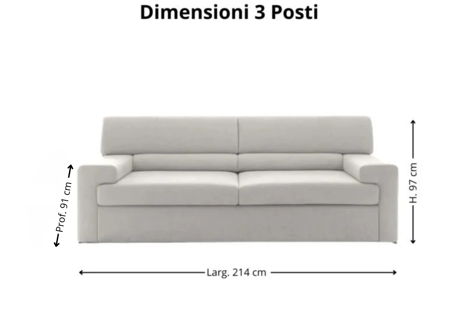 - Dimensioni Tre posti: Larghezza 214 – Profondità 91 – Altezza Schienale 97 cm