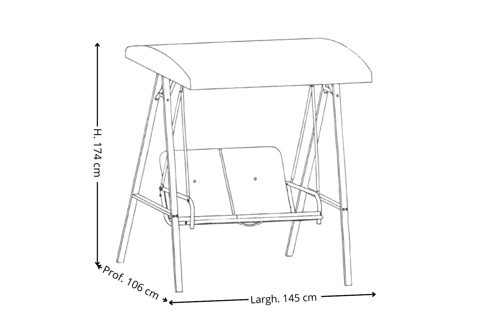 Larghezza 145 – Profondità 106 – Altezza 174 cm – Altezza schienale 50 cm