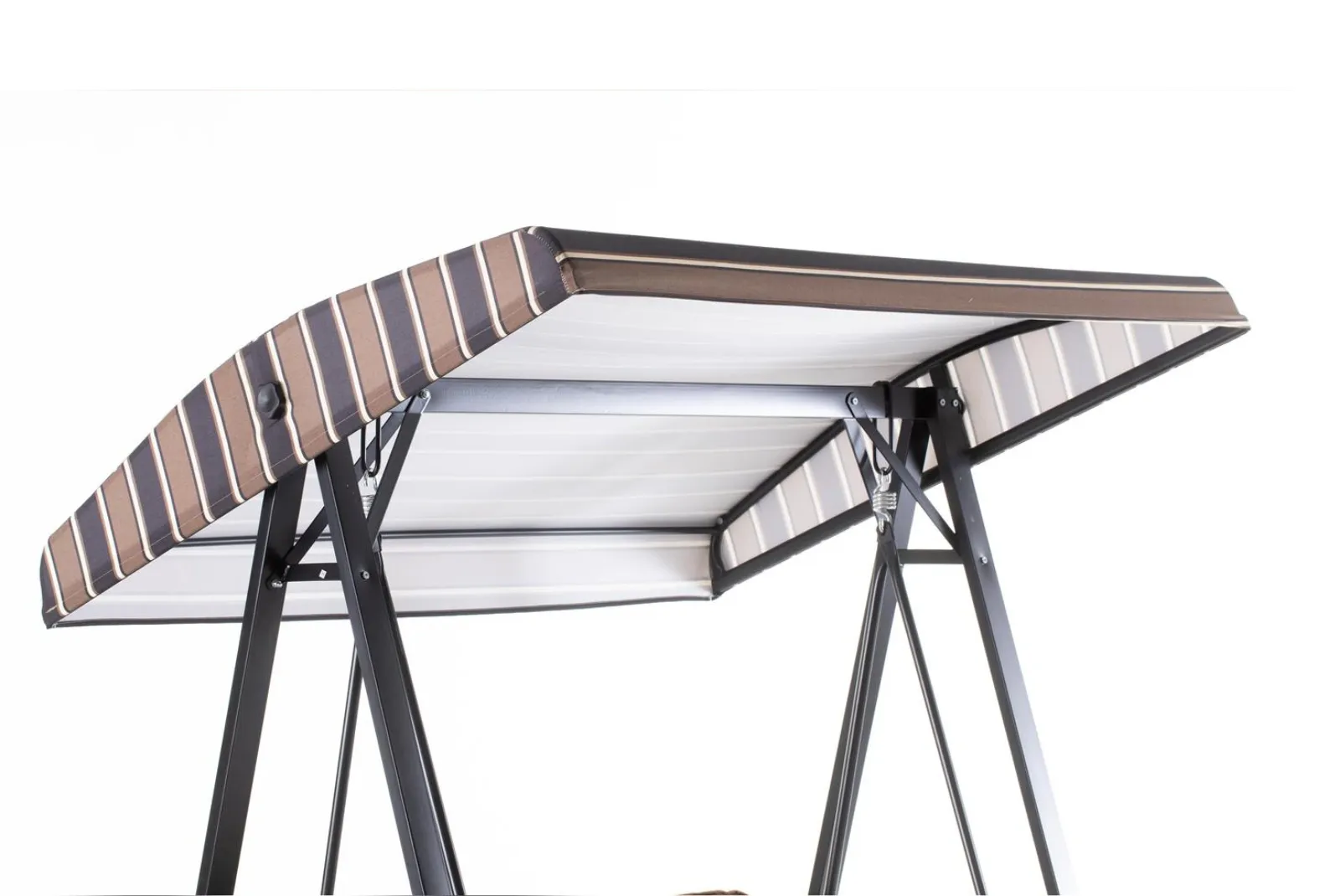• Tettuccio: Tessuto poliestere colore marrone chiaro/scuro rigato