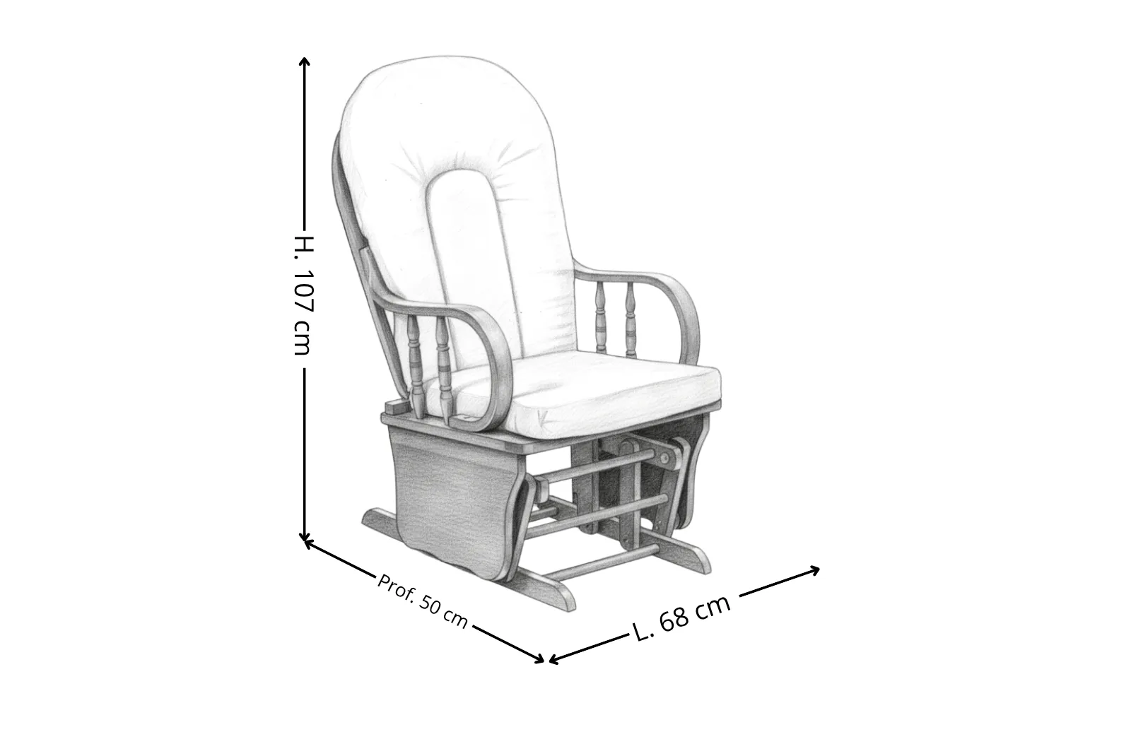 - Dimensioni: 68x50xH107 cm / Seduta 58x50cm – Schienale 48xH70 cm