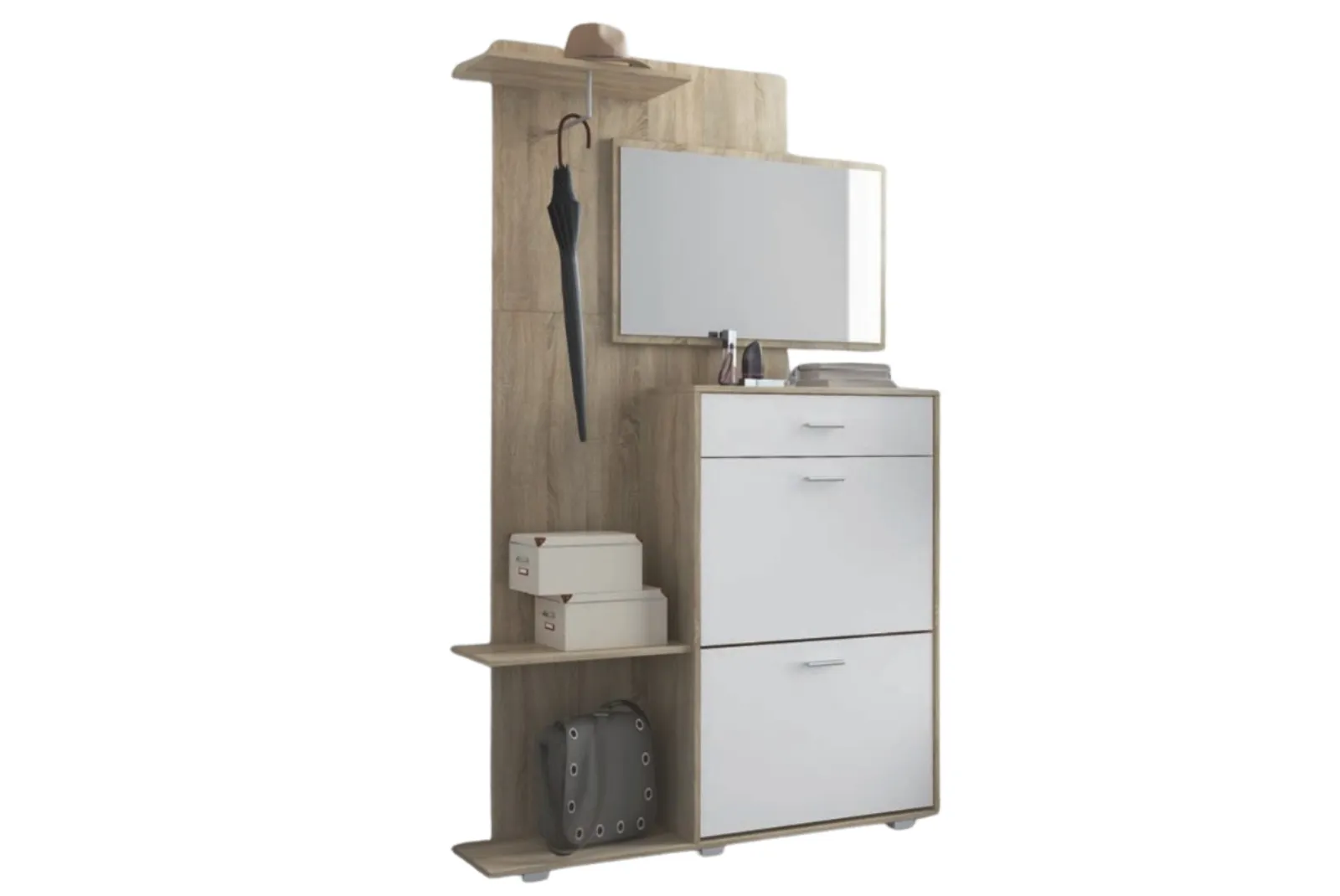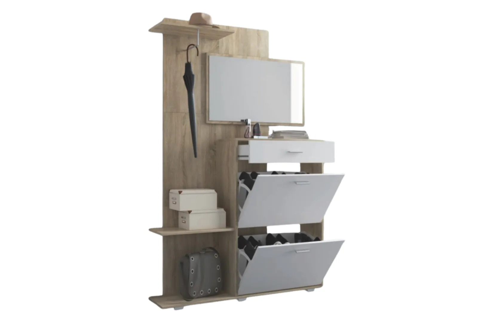 Con il suo design moderno e raffinato, questa madia darà un tocco di classe e raffinatezza al tuo ingresso. È disponibile nella finitura rovere e bianco per adattarsi perfettamente a qualsiasi stile d’arredo, dal moderno al classico.