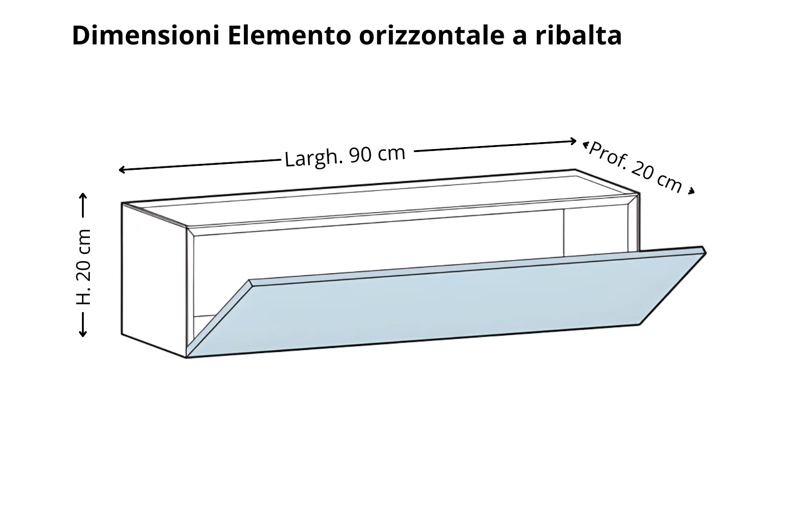 - Dimensioni elemento anta a ribalta: L.90 – Prof.20 – H.20 cm