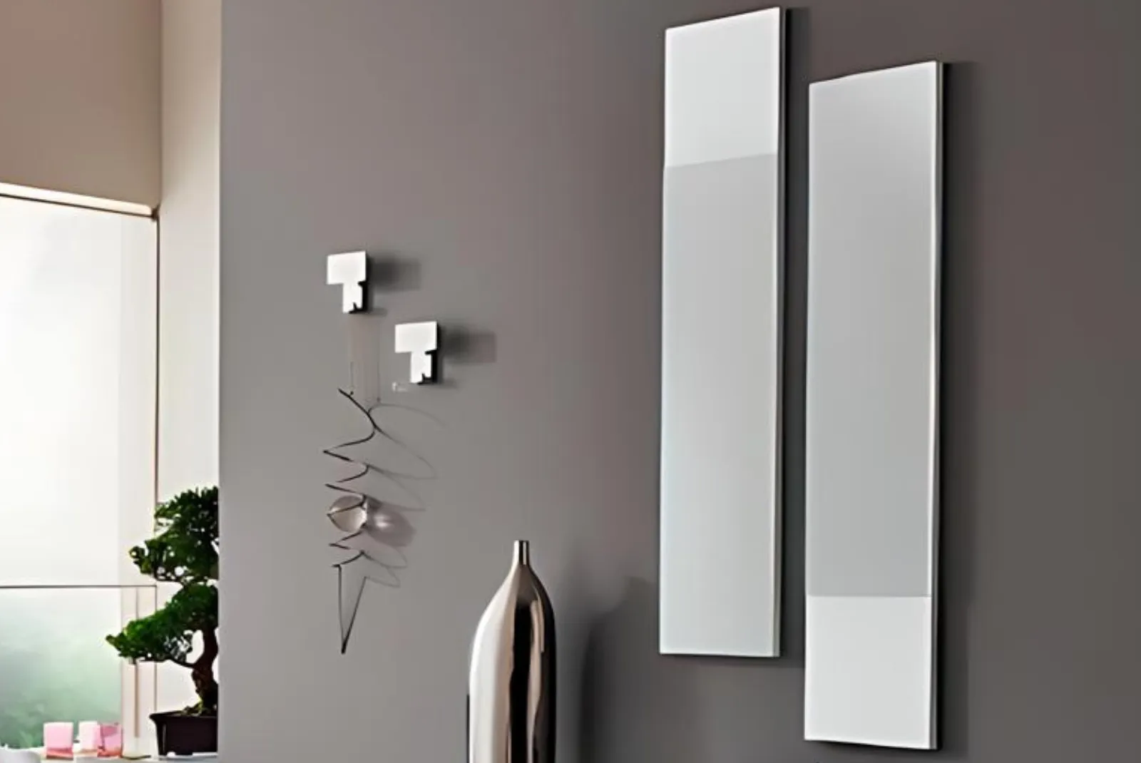 La composizione è la seguente; due elementi orizzontali Bianco opaco, due specchi Bianco opaco e due appendini finitura cromato.