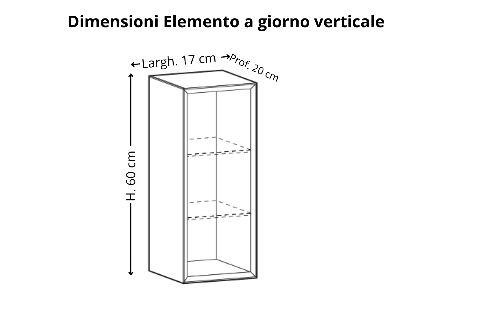 - Dimensioni elemento orizzontale: L.60 – Prof.20 – H.17 cm