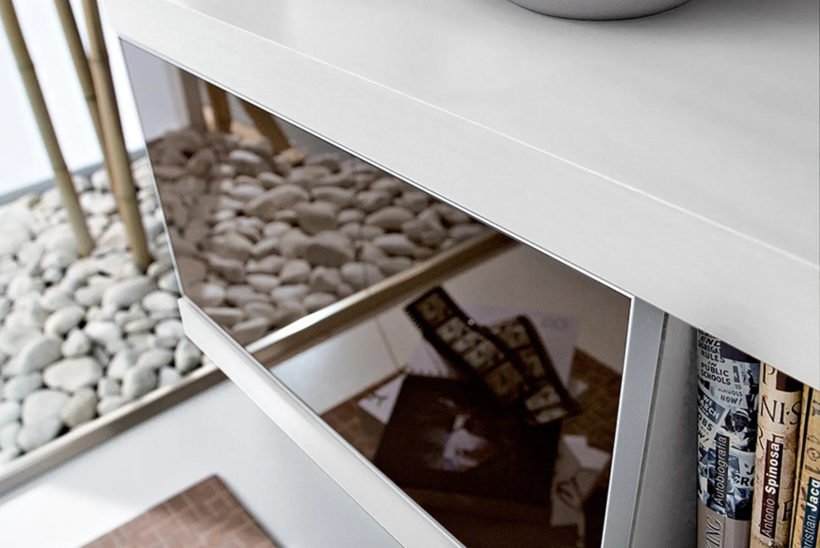 Vetro laccato disponibile nei colori: Bianco opaco – Moka