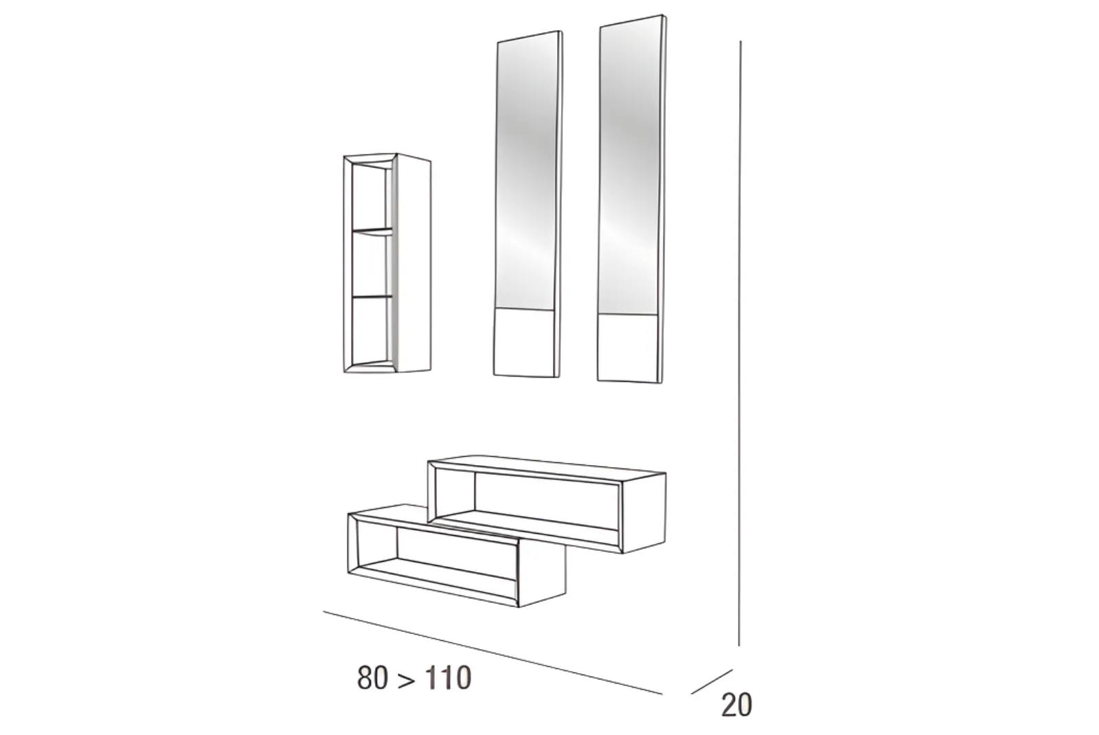 - Dimensioni composizione: L.110 – Prof.20 – H.160 cm