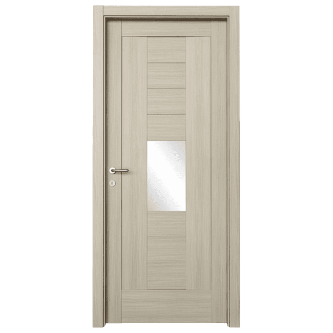 Porta da interno a BATTENTE Laminato, pannello esterno tamburato intelaiata con massello di abete di sezione 28x40mm, è dotata di struttura reversibile, così da poterla installare in qualsiasi posizione, viene fornita con telaio piatto in MULTISTRATO di spessore 40mm con guarnizione in battuta antirumore, completo di cornici telescopiche in MULTISTRATO di sezione 70×10 mm.
