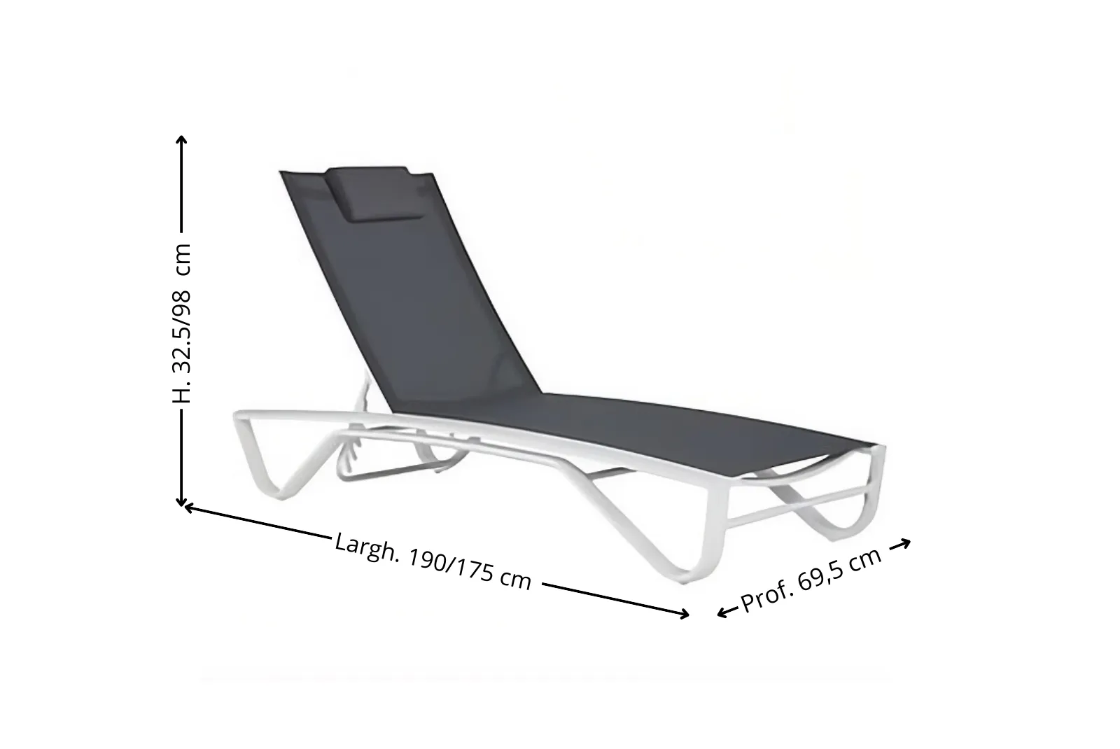 - Struttura: In alluminio verniciato a polvere colore bianco opaco – totalmente reclinabile